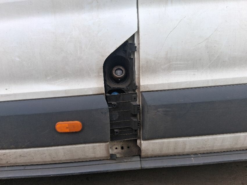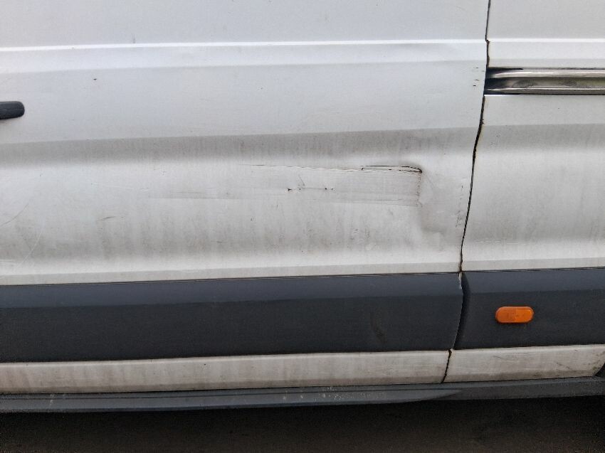 Oil residue on engine, rear doors, roof, o/s panel, o/s mirror, o/s wing, bonnet, petrol cap missing, n/s sliding door, n/s quarter, general wear and tear and scratches.