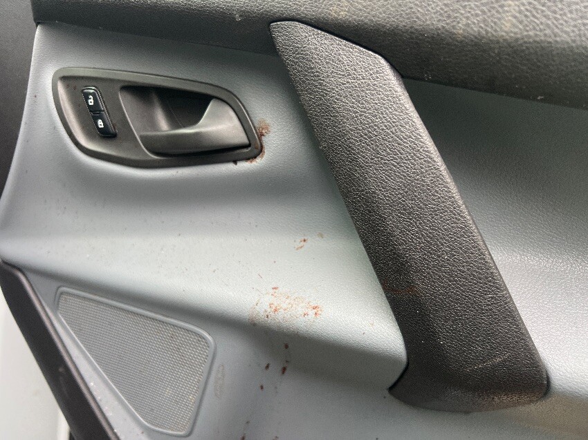 Bonnet catch doesn’t work, blood inside, window screen, rear doors, front bumper, headlight, offside front wing, offside front wheel, offside front passenger door, nearside rear wheel arch, general wear and tear.