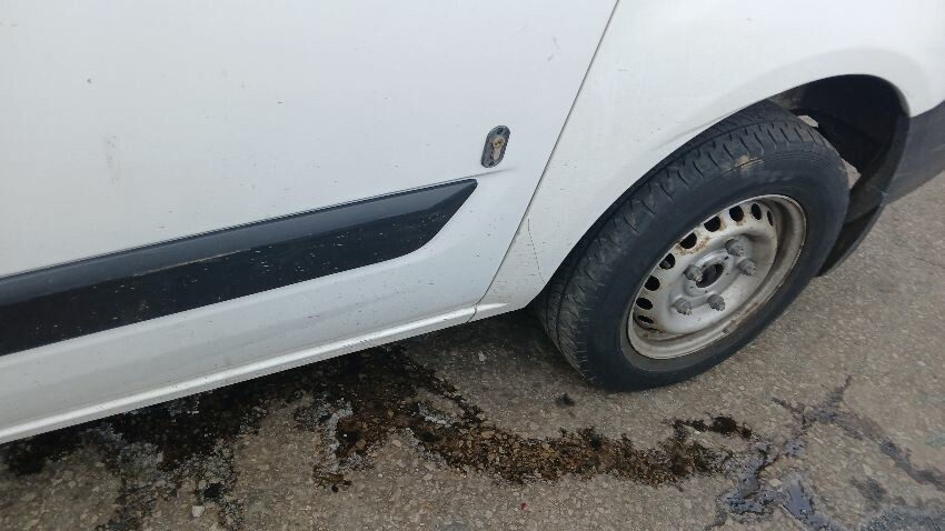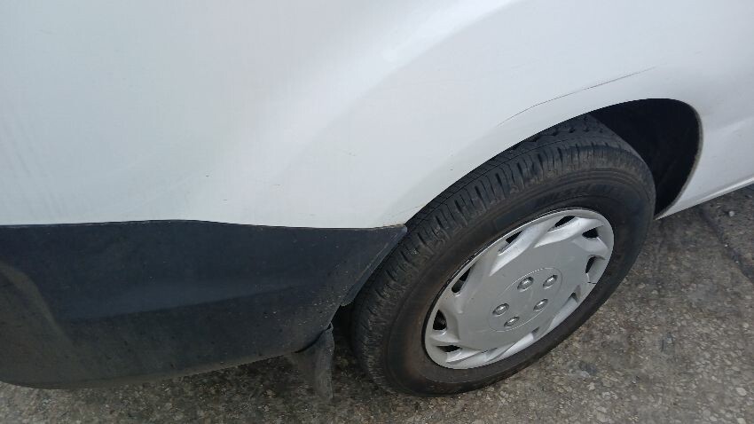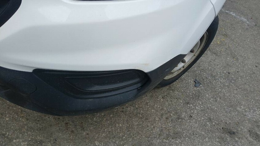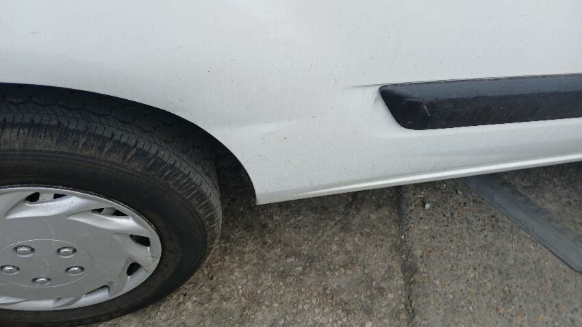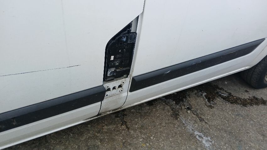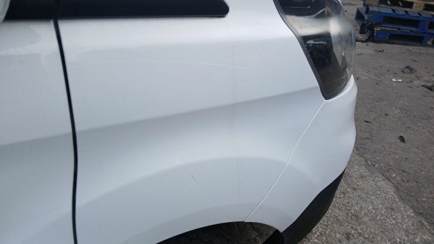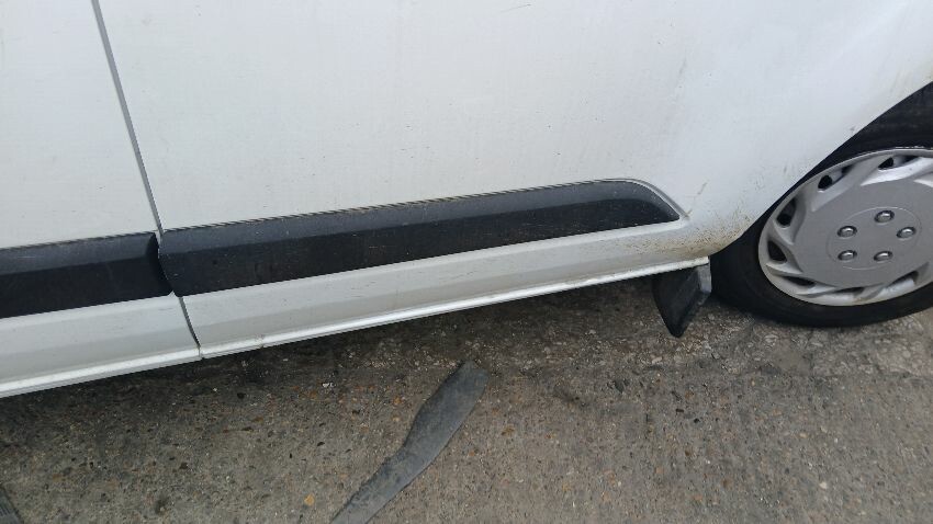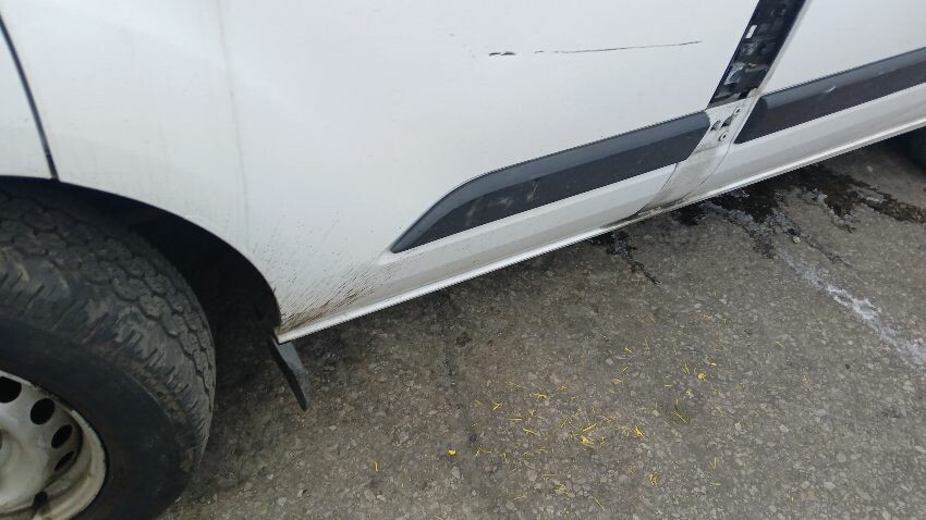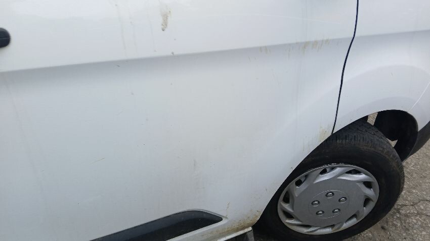 Front bumper, n/s wing mirror, n/s front door, fuel filler flap missing, n/s sliding door, n/s rear quarter, rear bumper, o/s rear door, o/s rear tail light unit, o/s rear quarter, scuffs and scratches all over, general wear and tear for age and mileage, ad blue leak