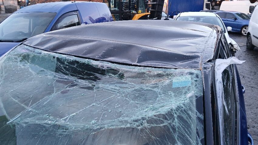 Front bumper, bonnet, bonnet jammed, n/s front headlight unit, n/s front wing, possible n/s suspension and steering assembly damage, front windscreen smashed, roof, n/s wing mirror, n/s rear quarter, rear bumper, o/s complete, o/s front window smashed, airbags deployed, scuffs and scratches all over, general wear and tear for age