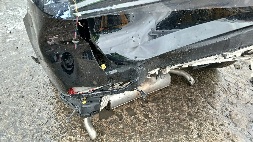 Front bumper, n/s rear quarter, rear bumper, boot lid, rear windscreen smashed, both rear light units, exhaust, possible suspension damage to both sides at rear, possible rear structural damage, o/s rear quarter, o/s rear door, scuffs and scratches all over, general wear and tear for age