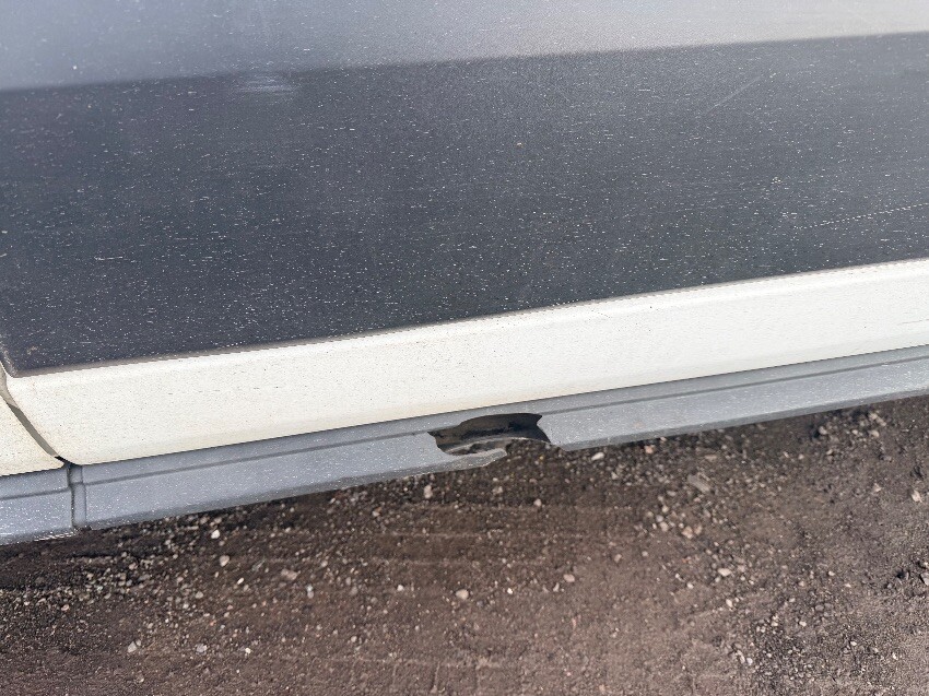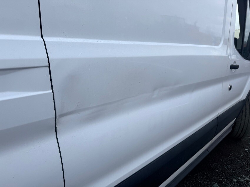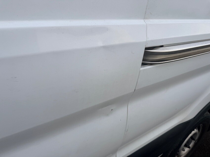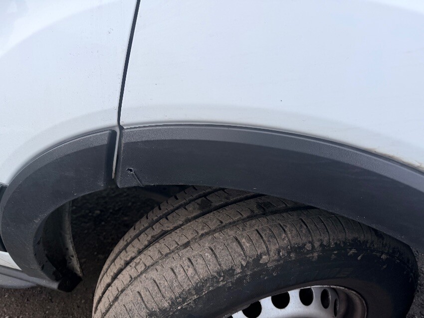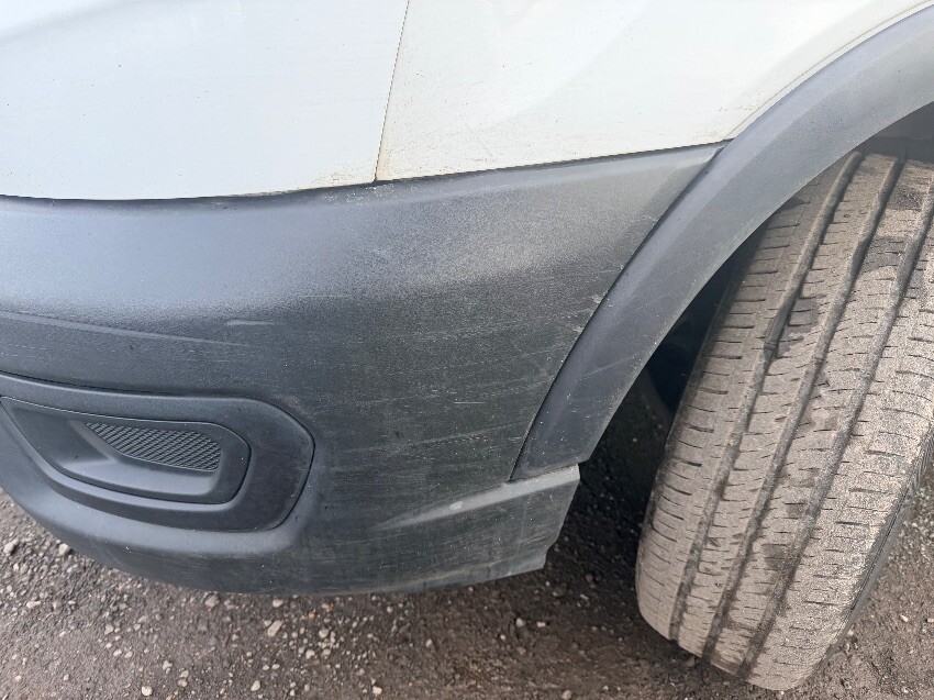 O/s front wheel arch held on with zip tie. scuffs on from bumper. n/s sill plastic cracked. dents on n/s sliding door. dents on rear doors. dents on o/s body panels. general other wear and tear.