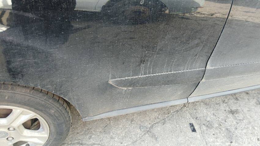 Front bumper, bonnet, n/s front wing, n/s front door, n/s wing mirror, n/s sliding door, n/s rear quarter, n/s rear light unit, rear bumper, o/s rear quarter, o/s front wing, scuffs and scratches all over, general wear and tear for age