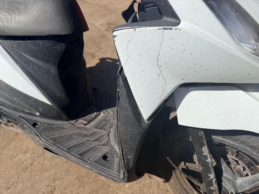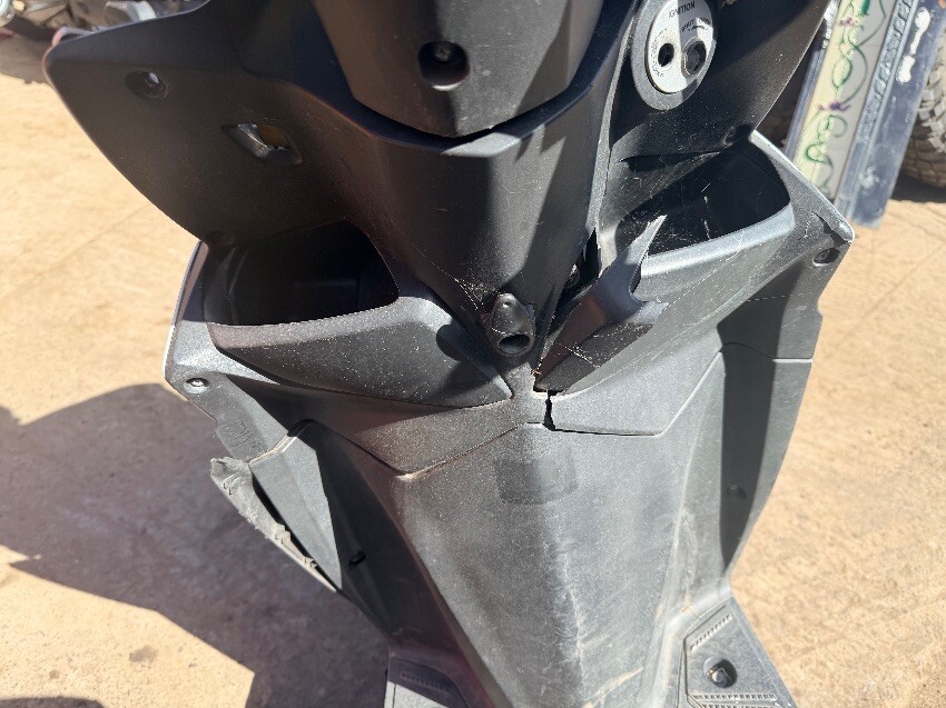 Plastic cover missing from front fairing. multiple cracks/scratches/damage across all plastics on bike. mirrors missing.