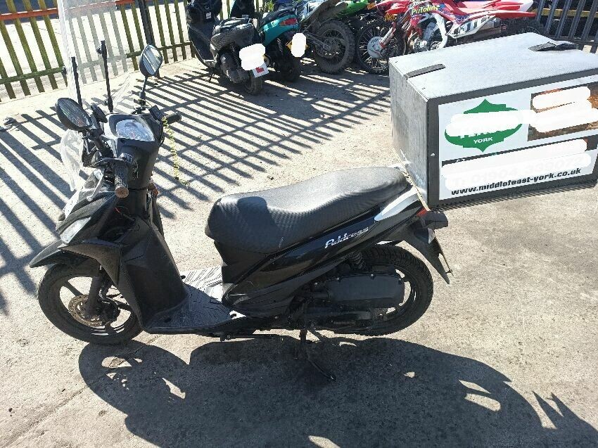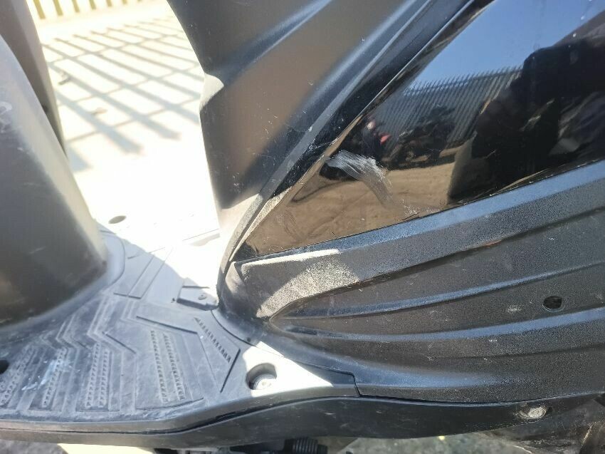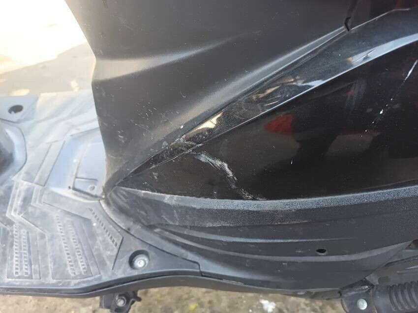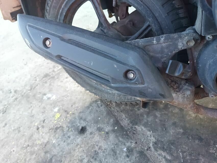 Scuff on the exhaust shield, exhaust rusty center stand rusty seat plastics are damaged, brakes are squeaking, general wear and tear