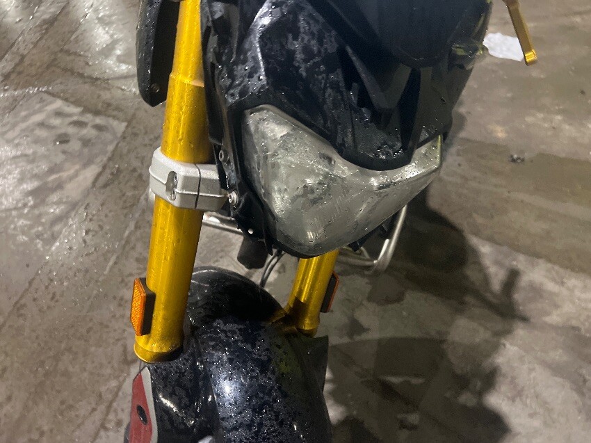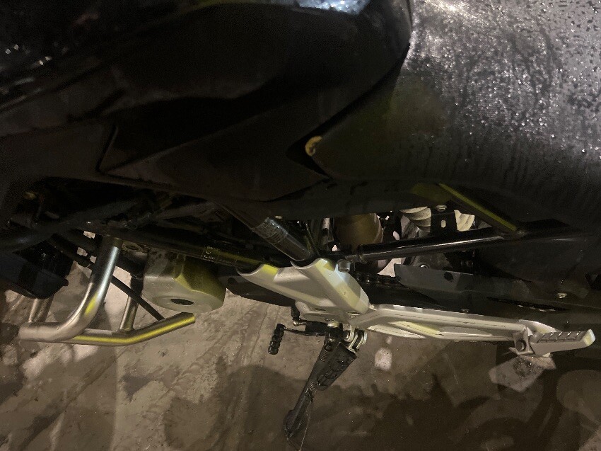 Scuffs all over, wires cut, front plastics, seat, general wear and tear.