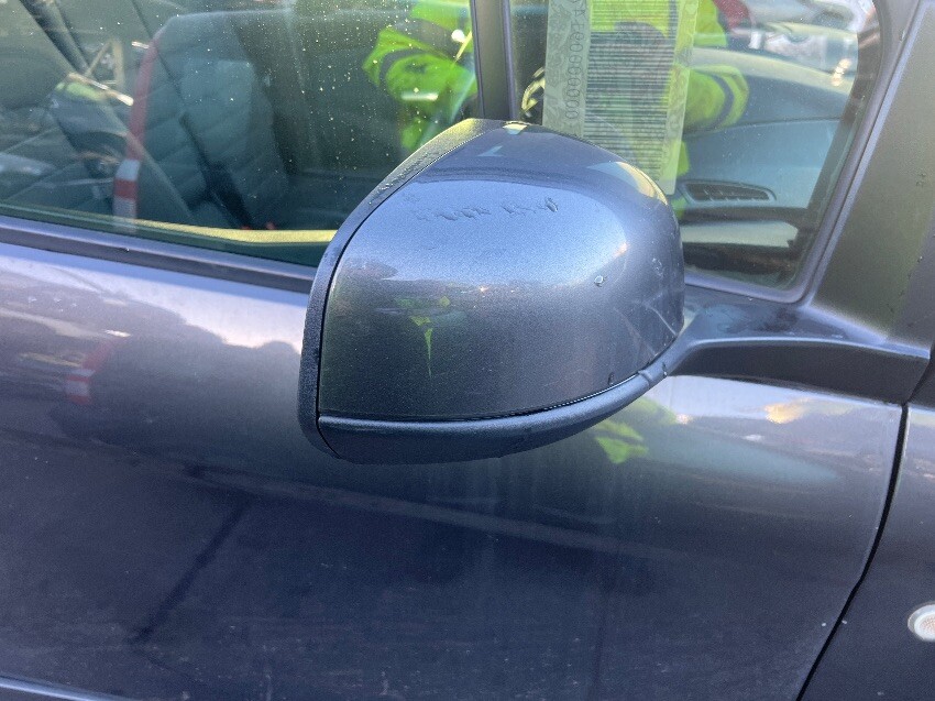 Driver seat, offside wing mirror, front lower grill, stone chip on window screen, nearside front passenger door, general wear and tear.