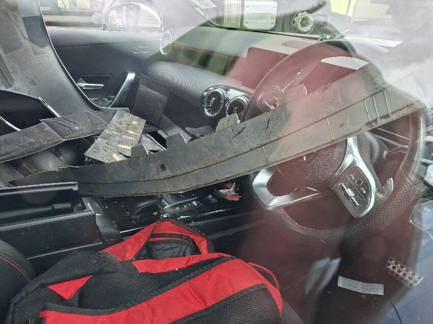 Deadlocked, bonnet damaged, bonnet release broken, front bumper damaged, missing window screen trim, o/s/f wing damaged, o/s/f door damaged, o/s/r door damaged, o/s/r wind shattered, rear bumper damaged, n/s/f window shattered, general wear and tear,