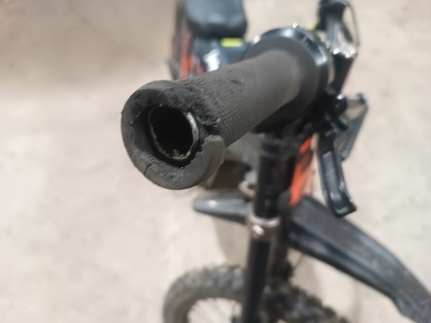 Frame scratched, grips damaged, handlebars damaged, screen damaged, front light loose, kickstand bent general wear and tear