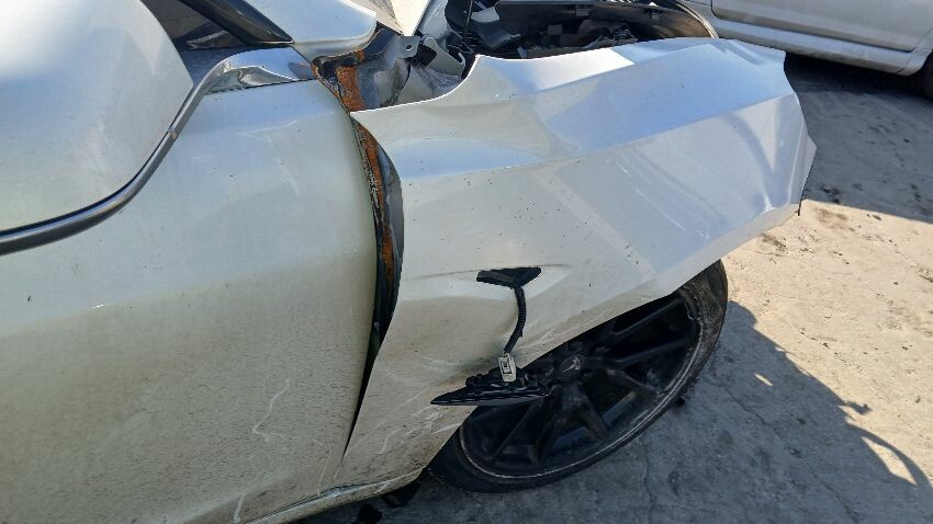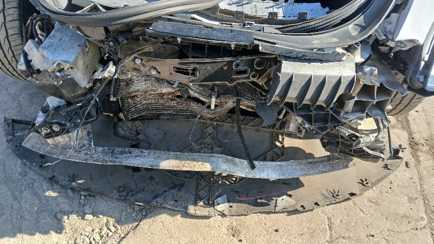 Heavy damage to entire front end, os front headlight unit missing, bonnet doesn't close, ns front wing, front windscreen, ns rear quarter, rear bumper, os rear quarter, os front door, os front wing, scuffs and scratches all over, general wear and tear for age, airbags deployed