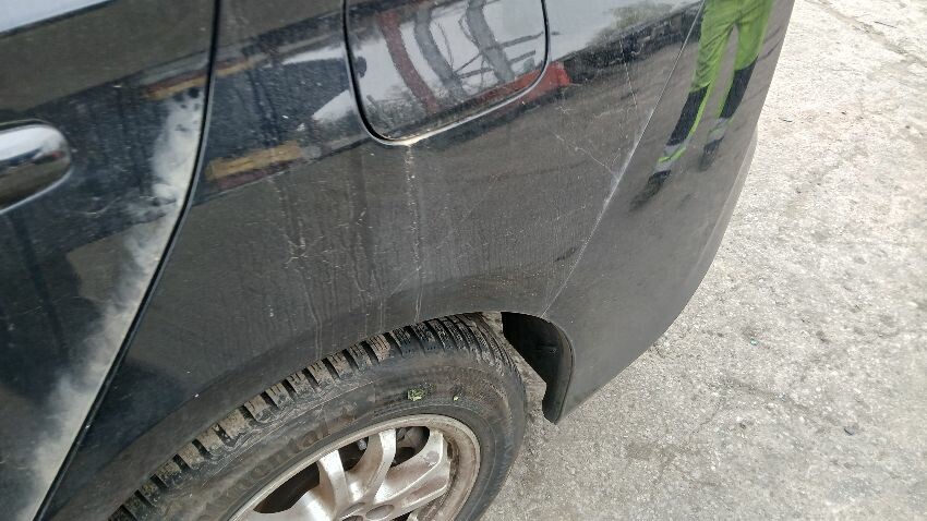 Front bumper, n/s wing mirror, n/s front door, n/s rear door, n/s rear quarter, rear bumper, o/s complete, scuffs and scratches all over, general wear and tear for age and mileage