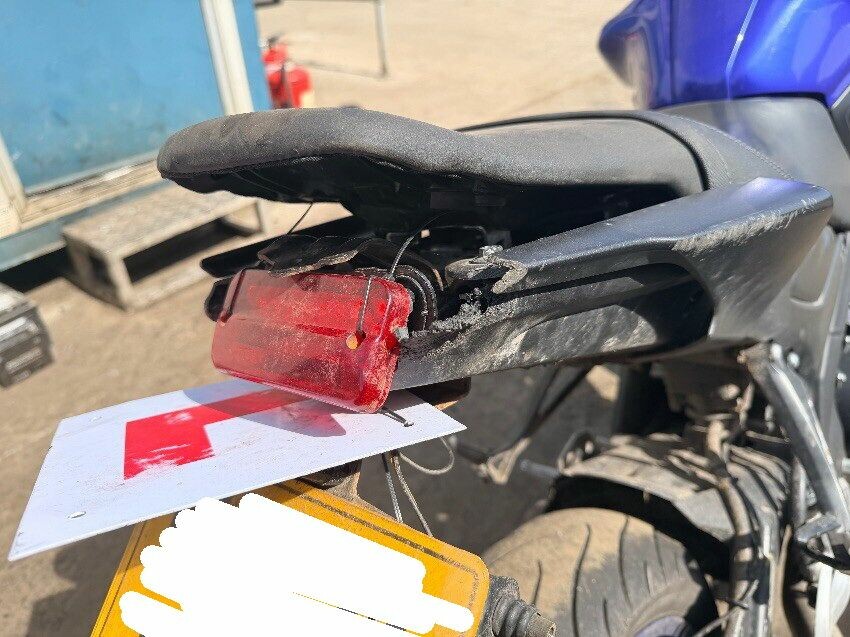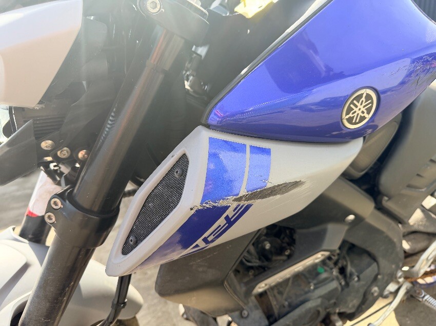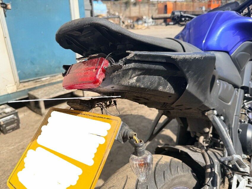 Damage to rear fairing and brake light. scuffs on plastics left side of tank. scuffs on plastics front nose of bike. clips damaged on plastics right side of tank. left handle bar bent out of shape. rear indicators damaged. other general wear and tear. engine runs but unable to test if it drives.