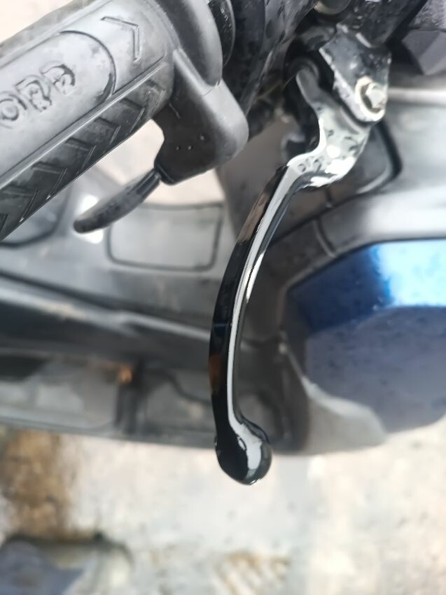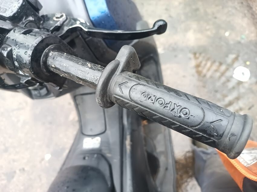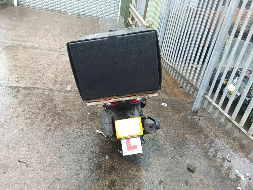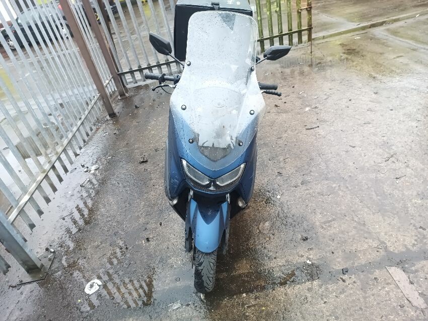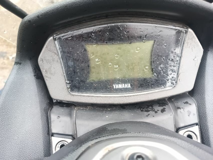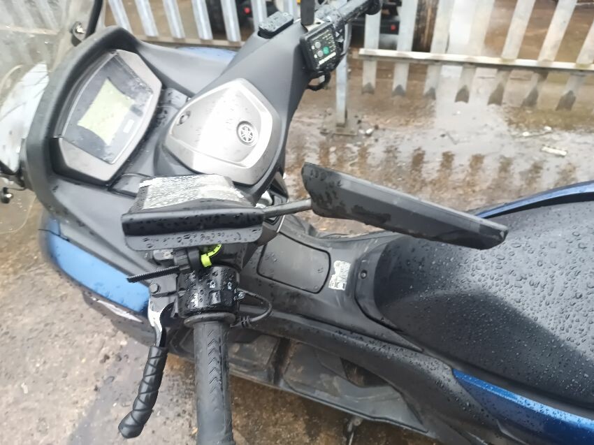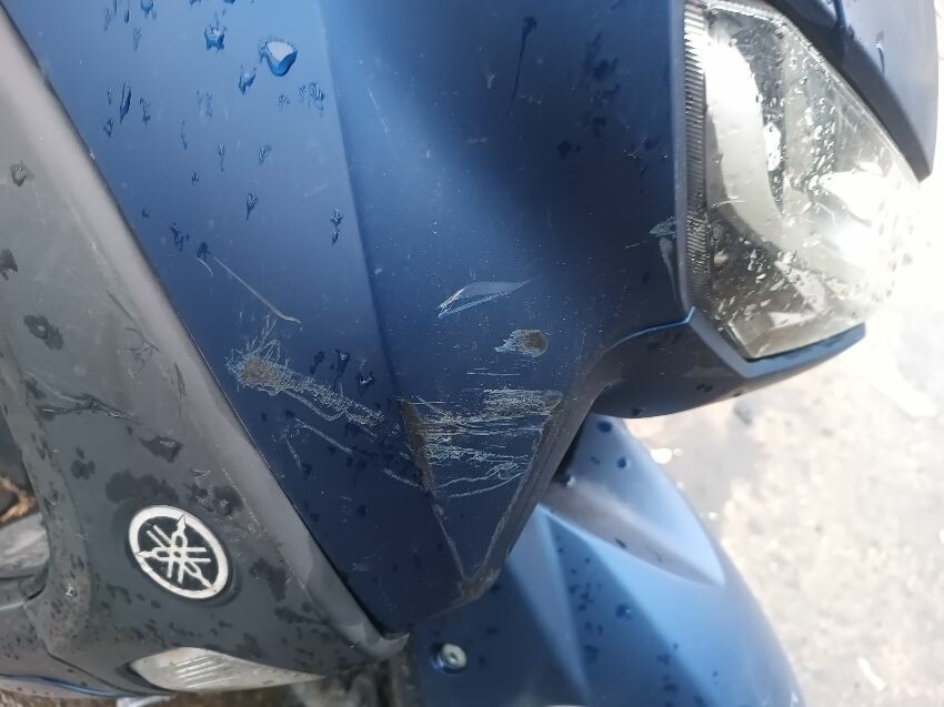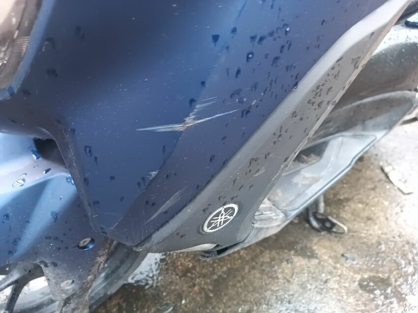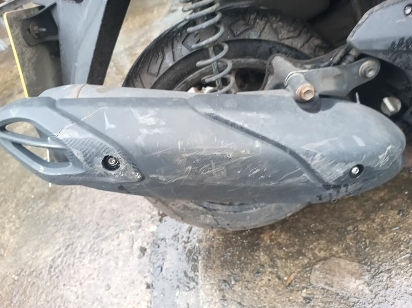 Unable to get to battery because topbox is preventing access to under the seat, exhaust shield damaged, front plastics are damaged & loose, duck board plastics are loose, brake levers bent, grips are worn & loose, left mirror is loose, general wear and tear.