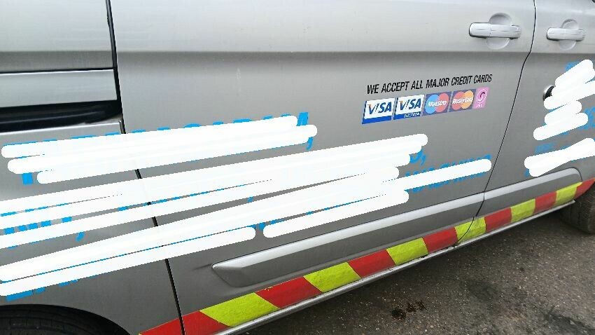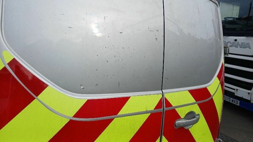 Front bumper, n/s front door, n/s wing mirror, n/s sliding door, rear bumper, both rear doors, o/s rear quarter, o/s wing mirror, scuffs and scratches all over, general wear and tear for age and mileage, front windscreen