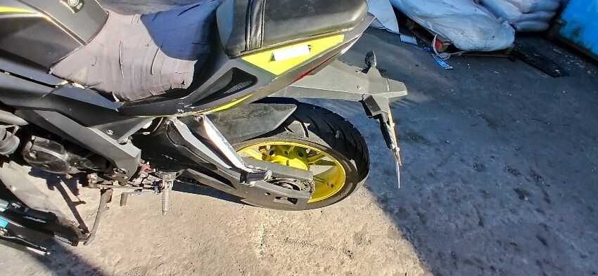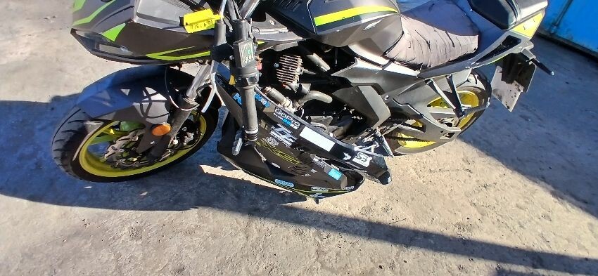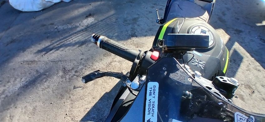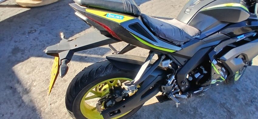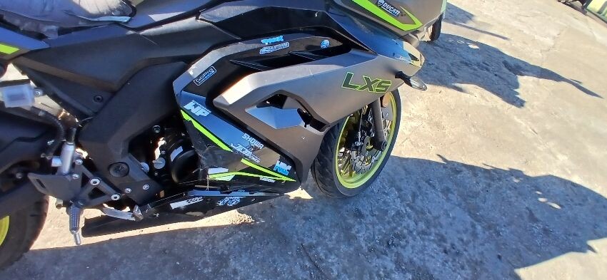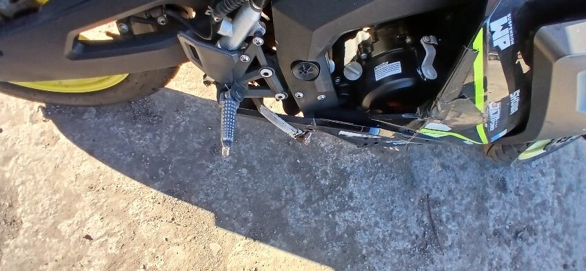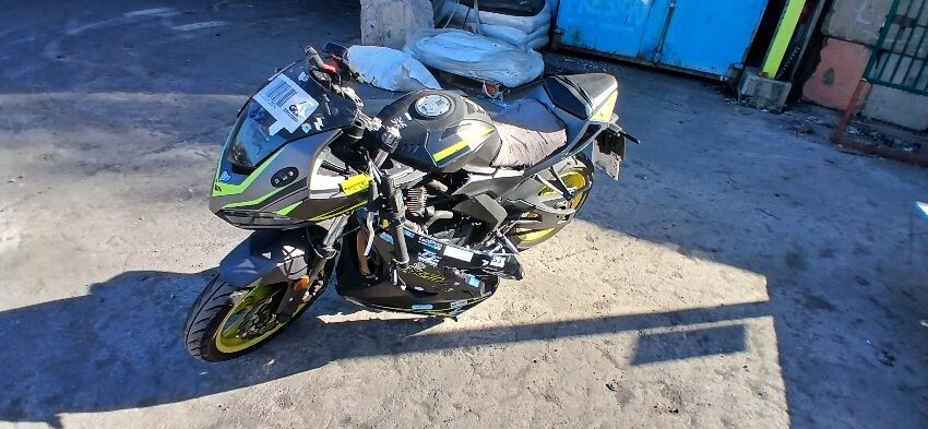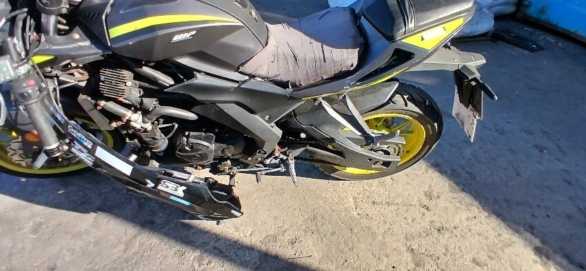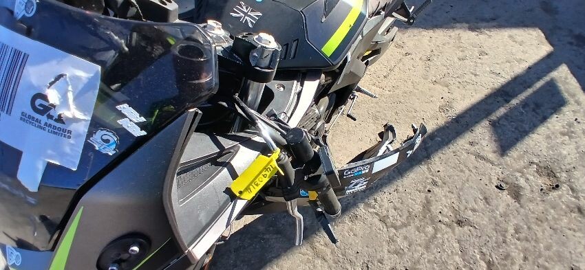 Front mudguard, front forks, front forks bent , front fairings, handlebars, handlebars snapped, grips, brake lever, clutch lever, seat, o/s fairings, foot brake, scuffs and scratches all over, general wear and tear for age, ignition barrel missing, ignition wiring damaged