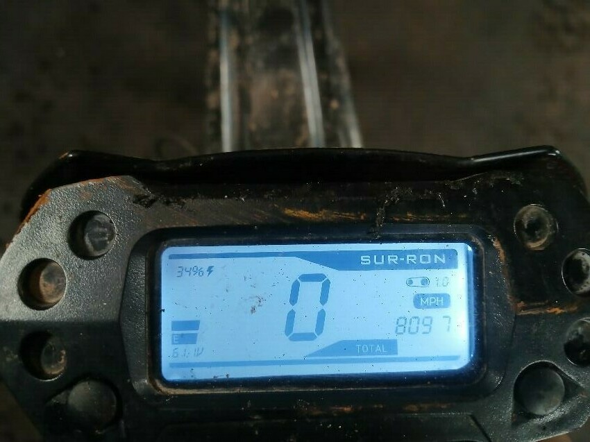 No front brake, plastics all round, seat, battery casing, scuffs wear and tear