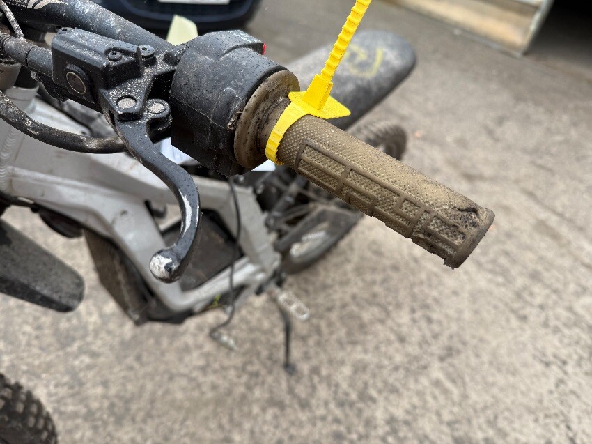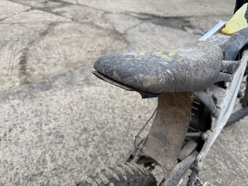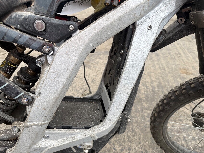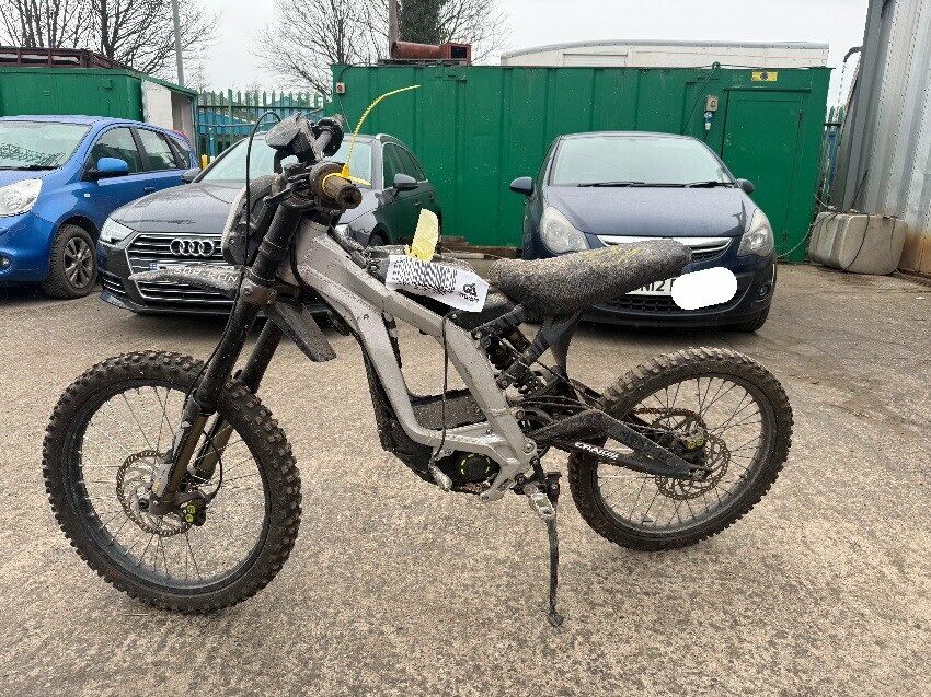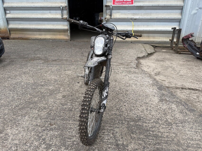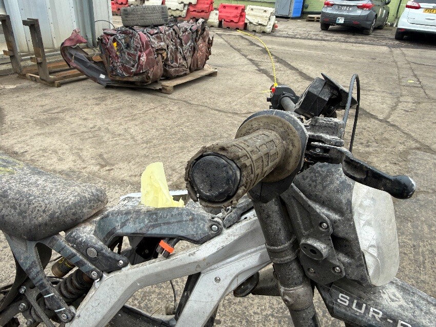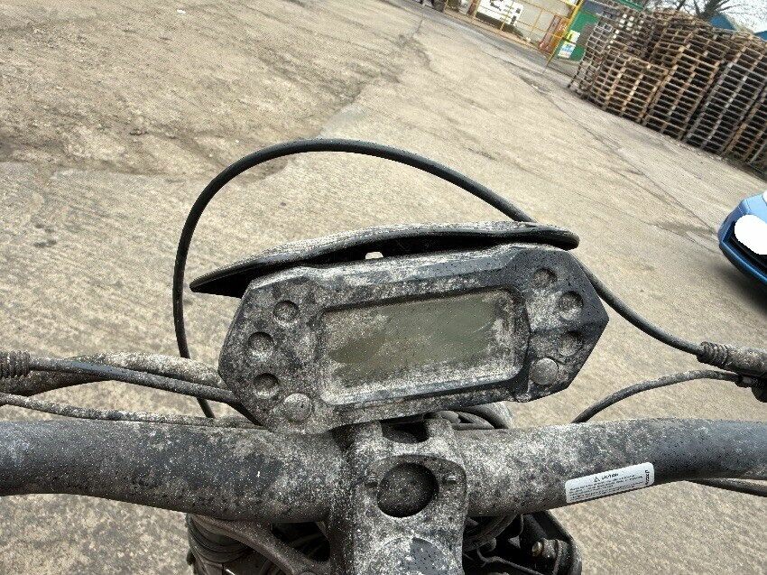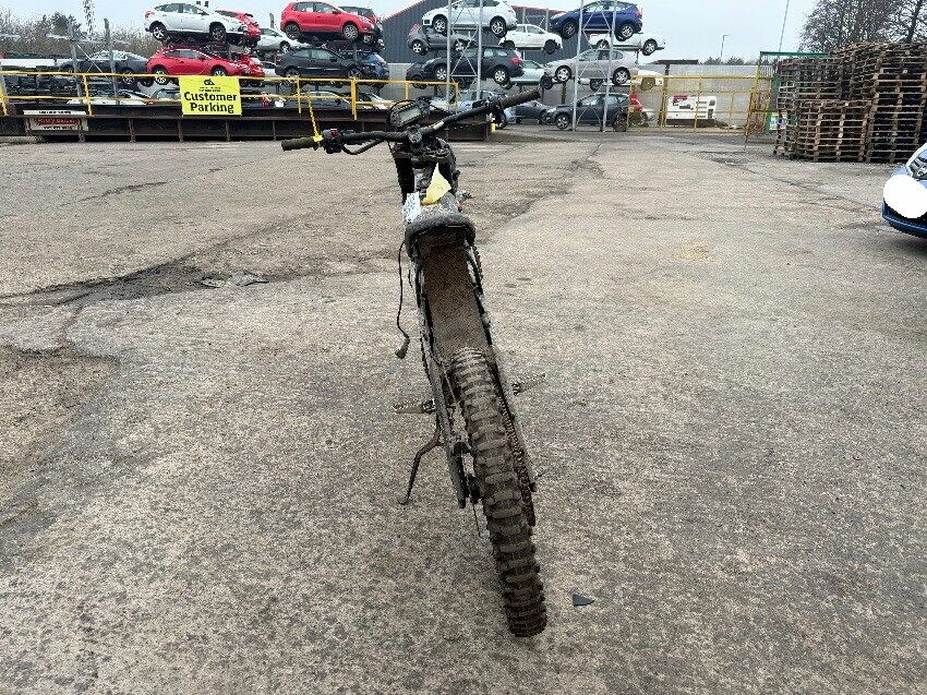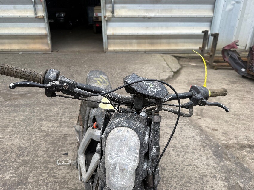 No battery, rear mudguard missing, handle bars twisted, o/s handle grip, n/s handle grip, n/s/f brake lever, general wear and tear.