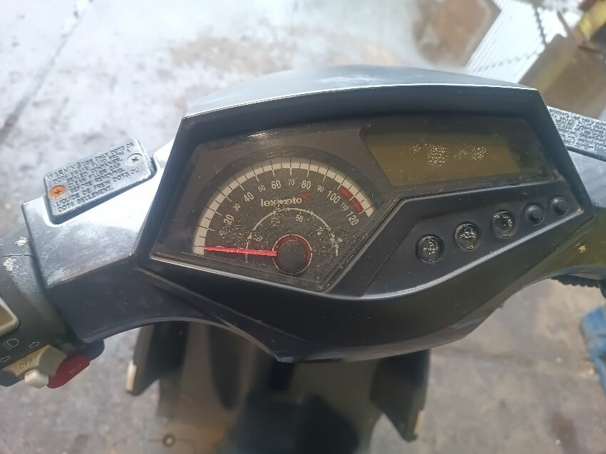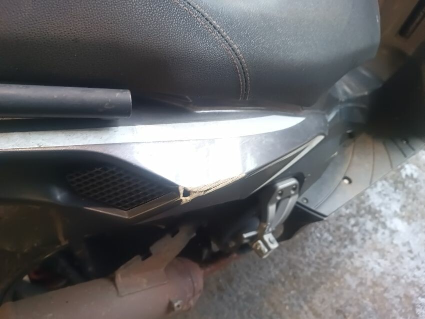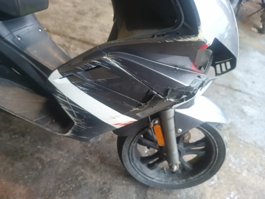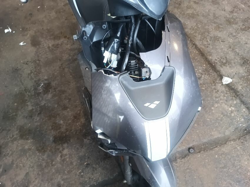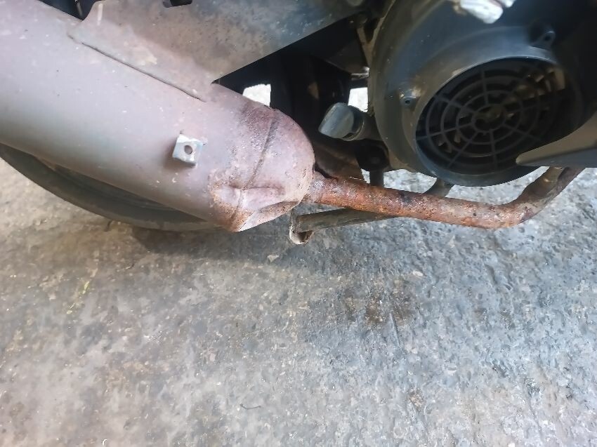 Left headlight is loose inside the plastics, front plastics are damaged & loose, muffler dented & manifold rusted, rear plastics are damaged, general wear and tear