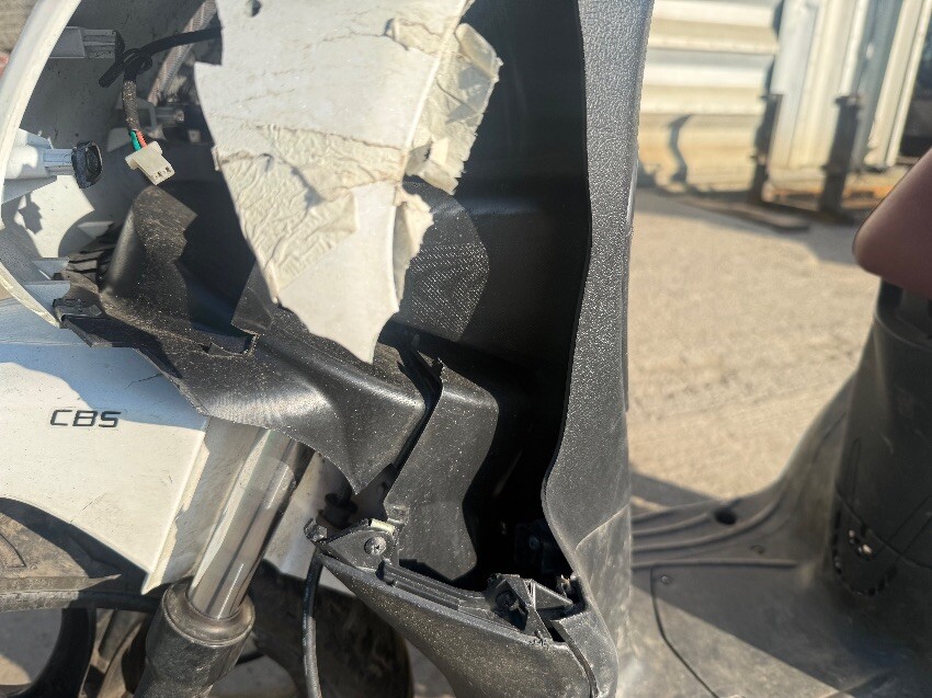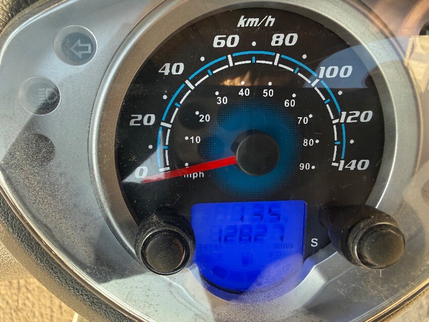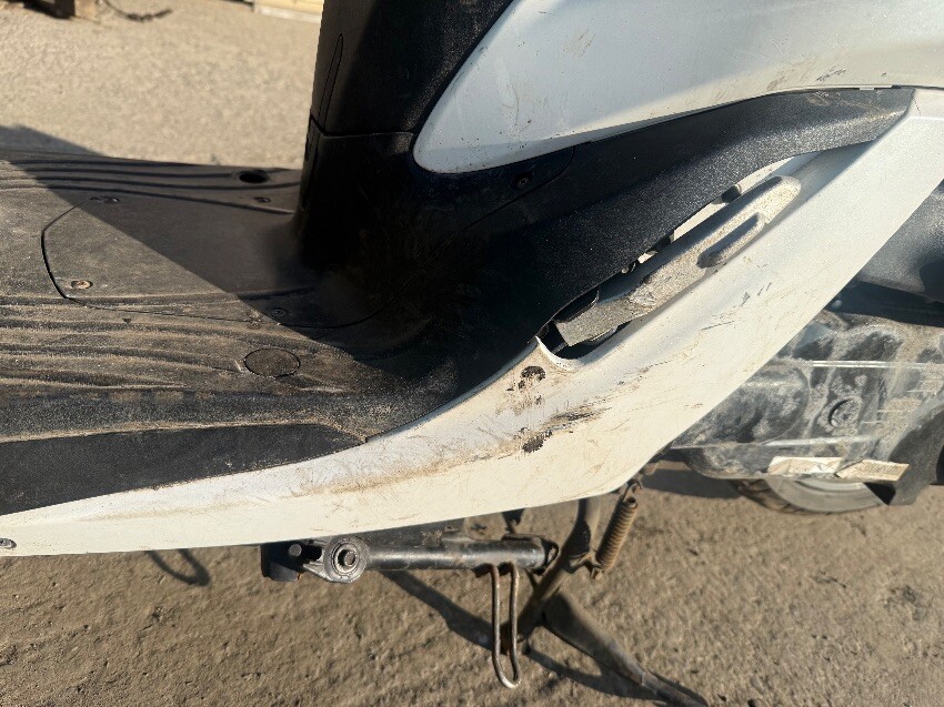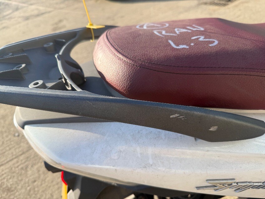 Rear grab handle, o/s/rear plastics, o/s/front plastics, front mudguard, n/s/front plastics, n/s/front brake lever, o/s mirror, n/s/rear plastics, general wear and tear.