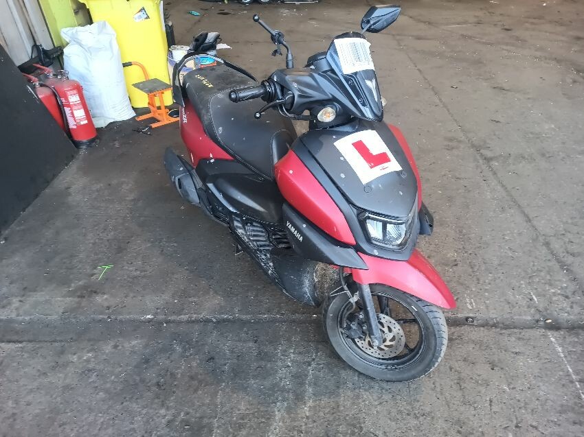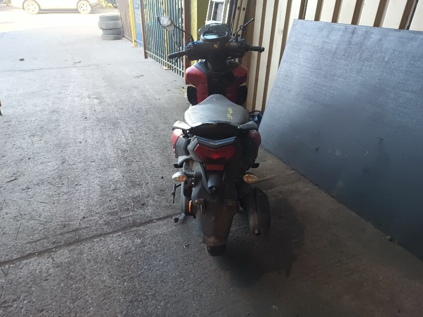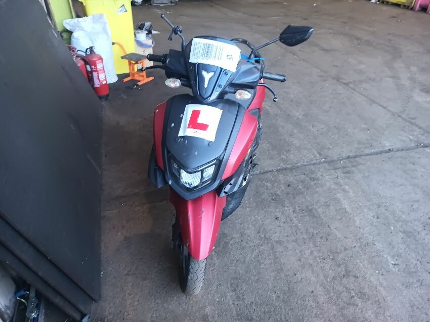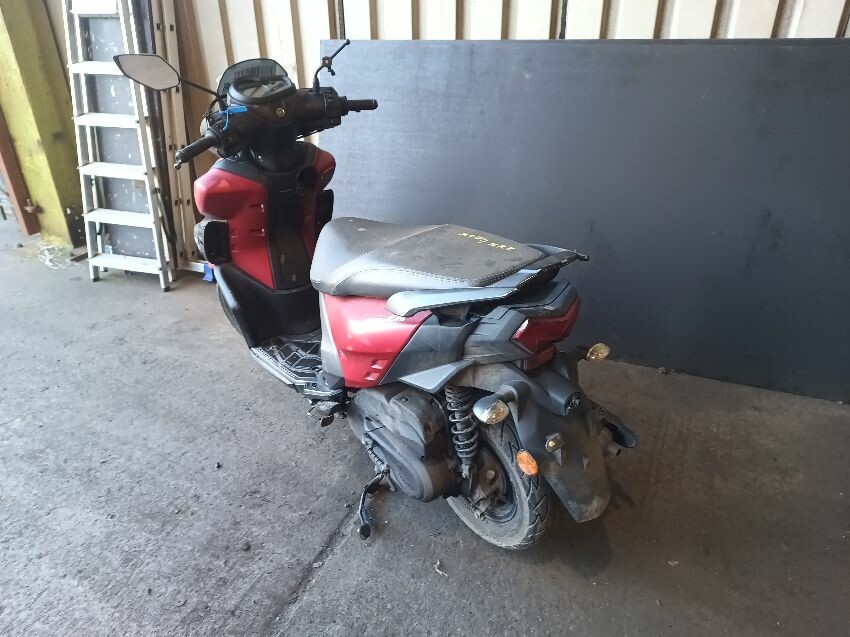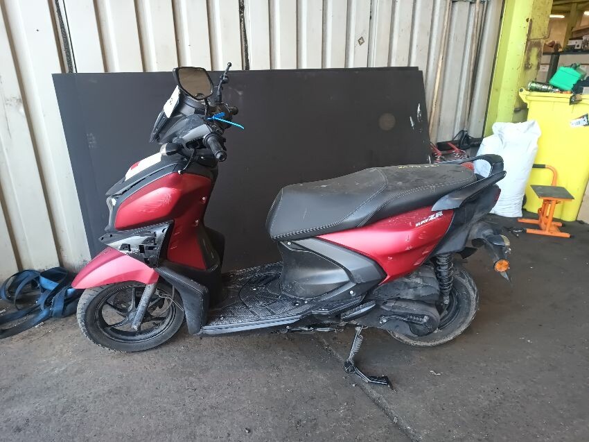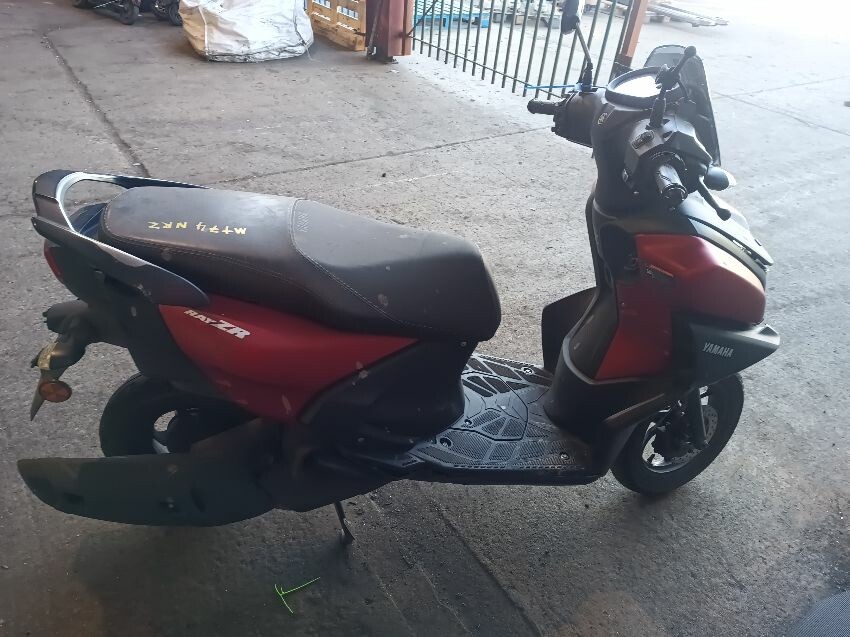 Front fender is scuffed, front plastics are scratched, left brake lever is bent, left front trim is missing, seat plastics are scuffed, paint has rubbed off on the grab rails, right mirror is broken,