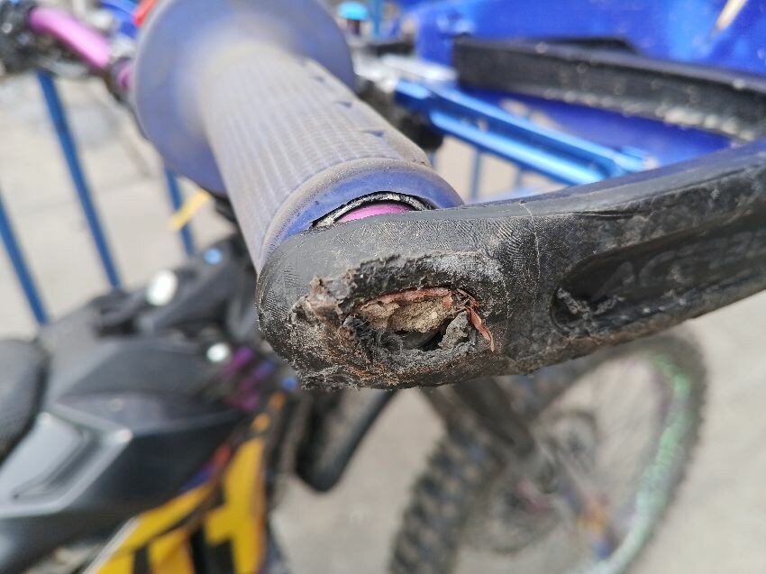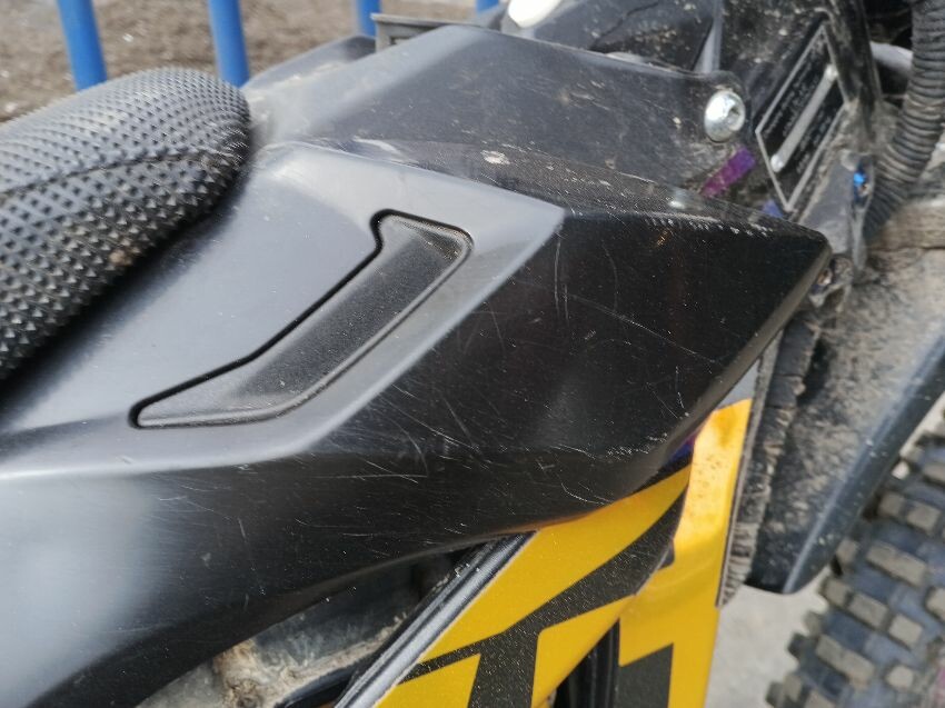 Plastics have scratches throughout, kickstand damaged, bar ends damaged, general wear and tear,