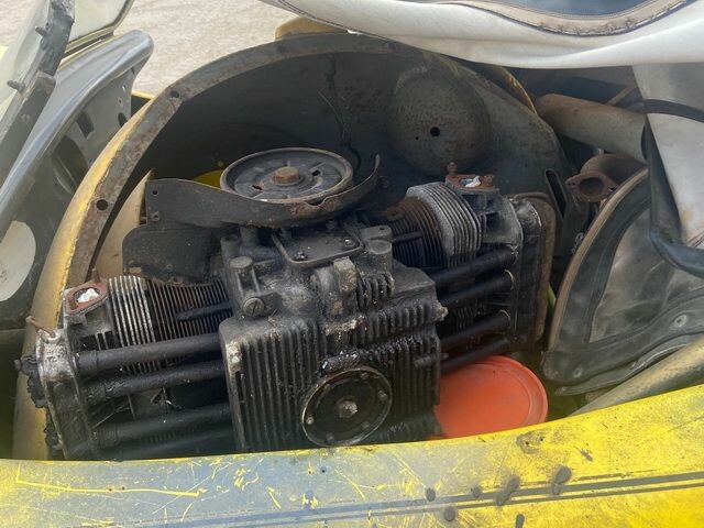 Engine in bits inside car, boxes of auxiliary bits. body work marked and scratched all over, roof is with car but marked and loose and not fitted properly.