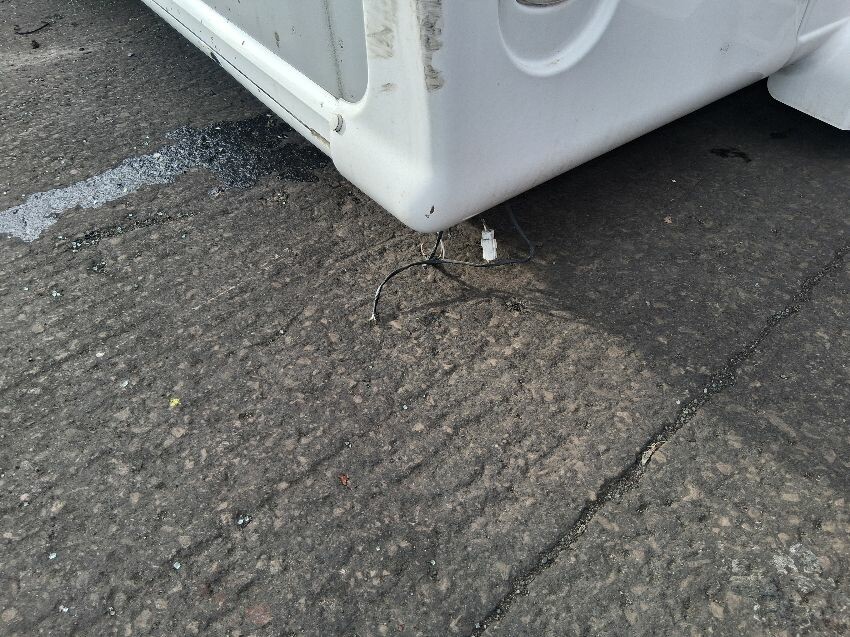 Loose wiring, outside compartments broken, rear panels broken, possible damage underneath, general wear and tear and scratches