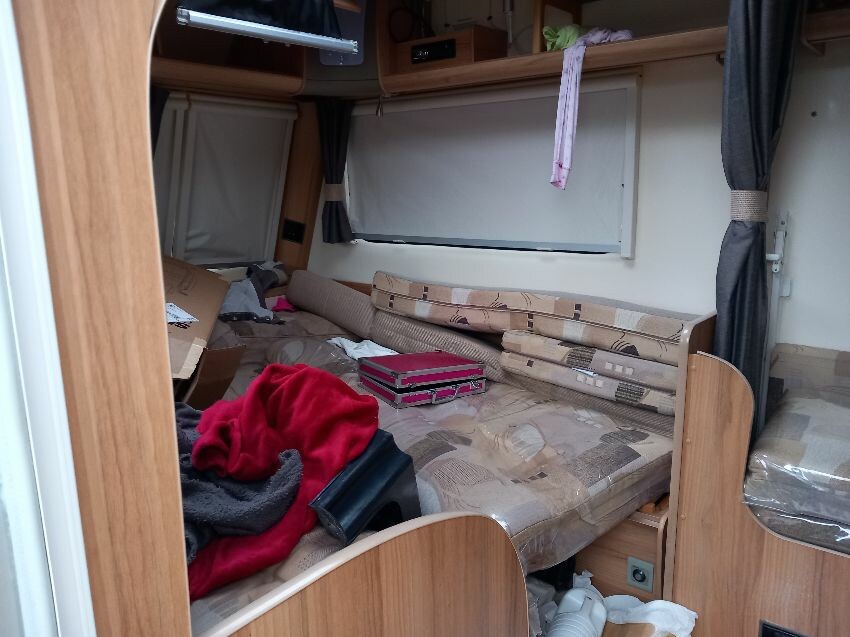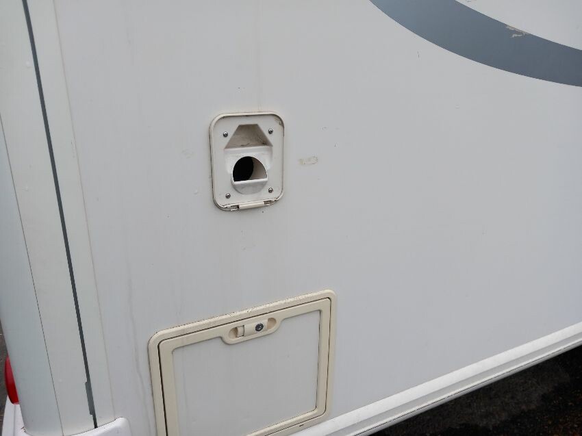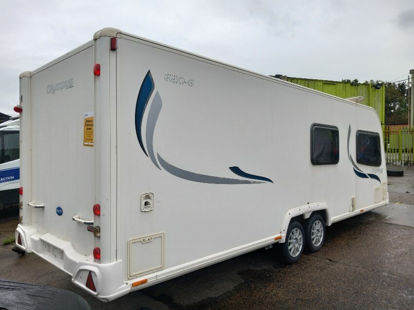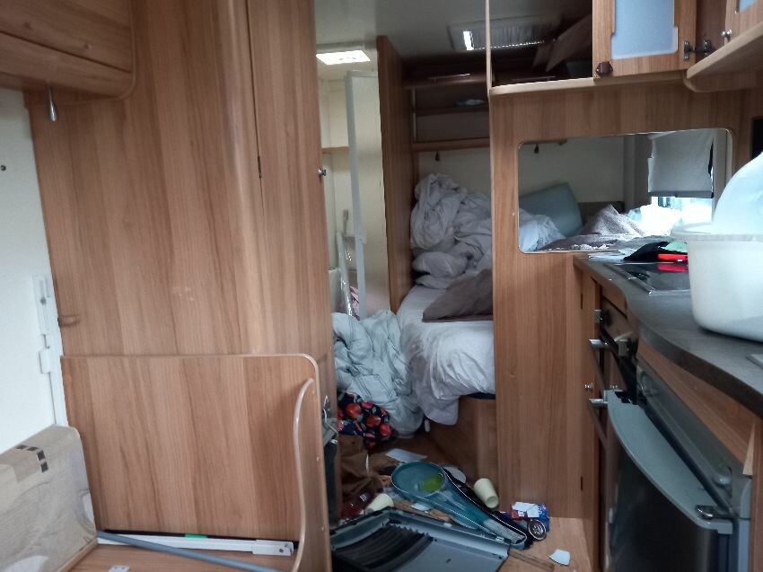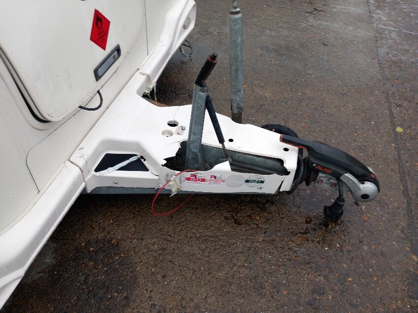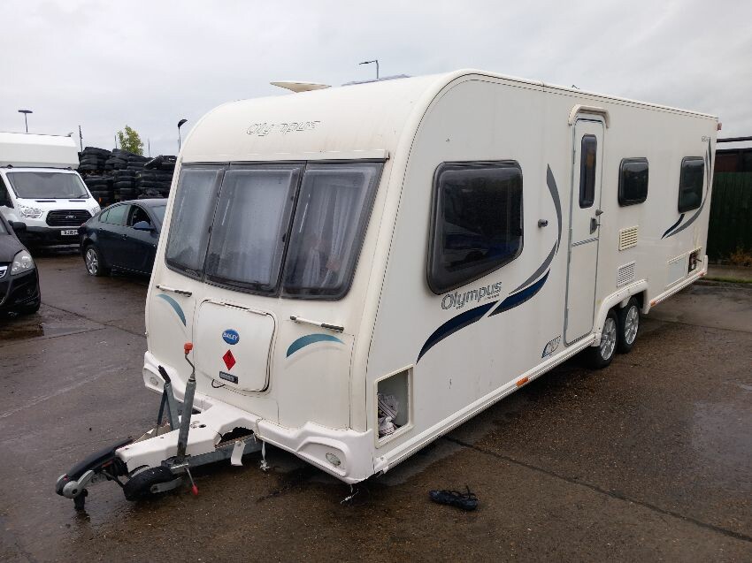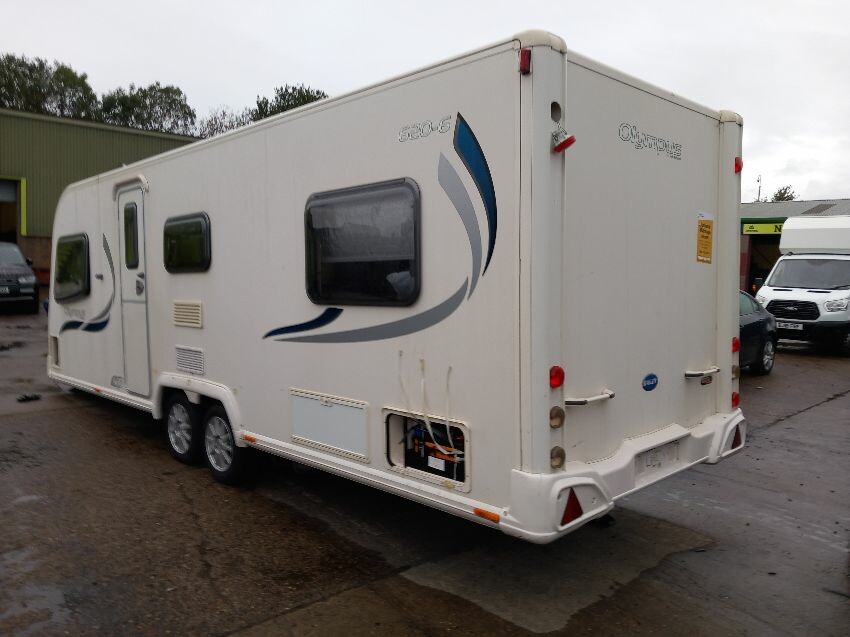 N/s, o/s, towing hook cover, some missing exterior covers, interior has been pulled out but majortity of cushions etc still have plastic wrapping on. some old food has been left in it previously so there is an awful smell inside, door handle broken.