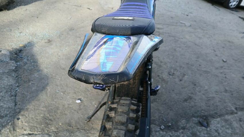 Front mudguard, brake levers, n/s frame, rear mudguard, o/s frame, scuffs and scratches all over, general wear and tear for age and mileage