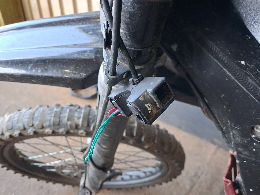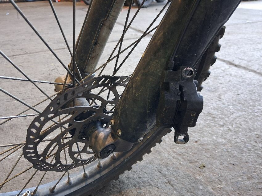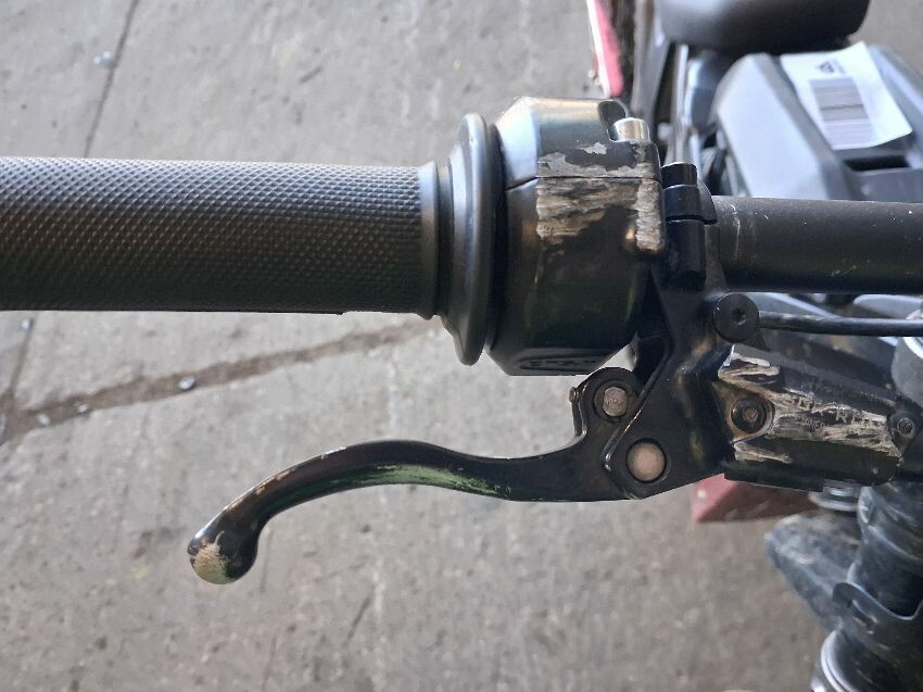 Missing display, brake levers damaged, front brake caliper not attached, horn switch damaged, general wear and tear,
