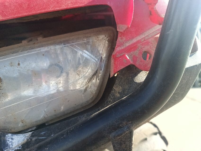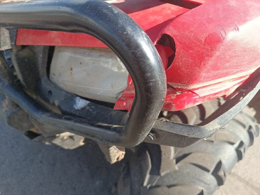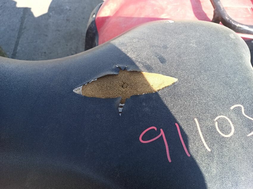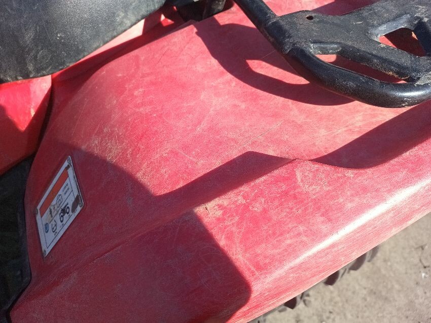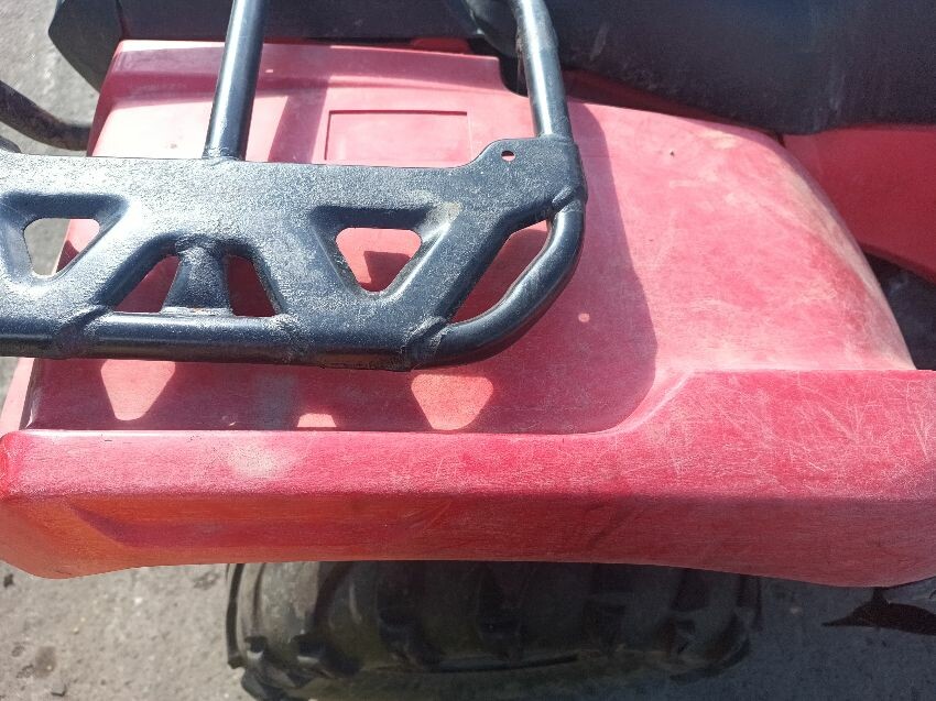 Front right wheel arch plastics are damaged, right headlight is scuffed, seat is torn, tank plastics are loose, front rack is rusty, chassis rusty & dented plastics throughout rear plastics are scuffed, front plastics are scuffed, general wear & tear.