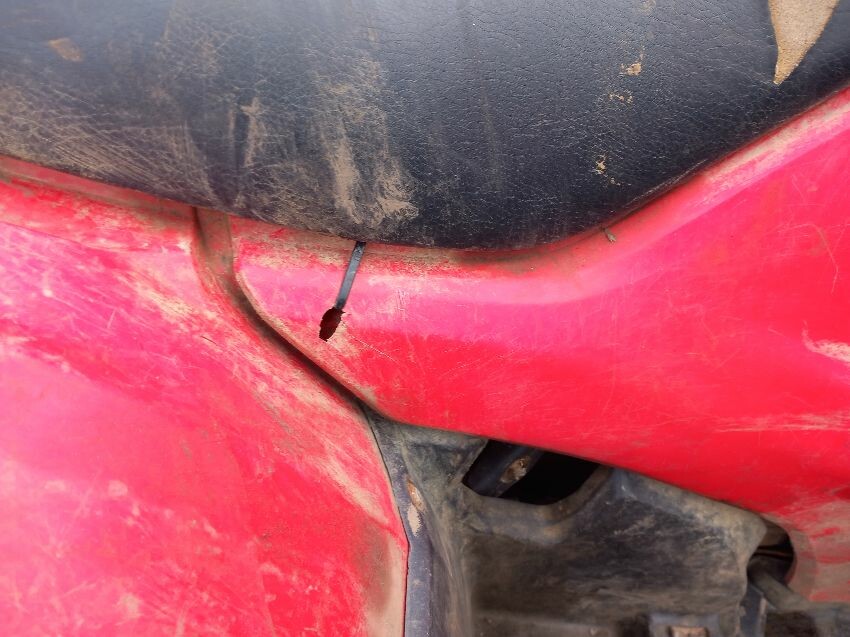 Damage all round from general use, seat, all plastic trims, mudguards, rear tyre, clutch lever, bumper, age and mileage related wear and tear all over.
