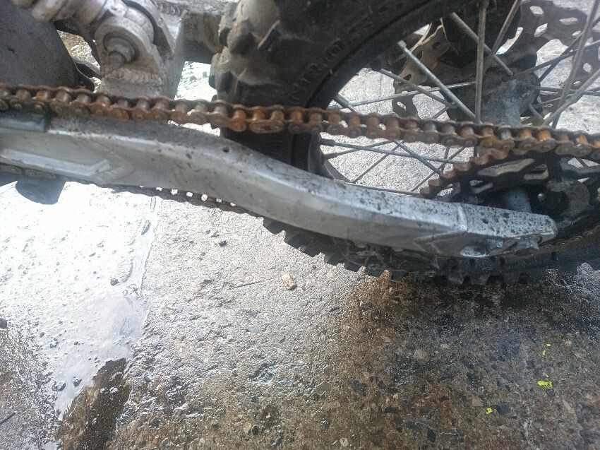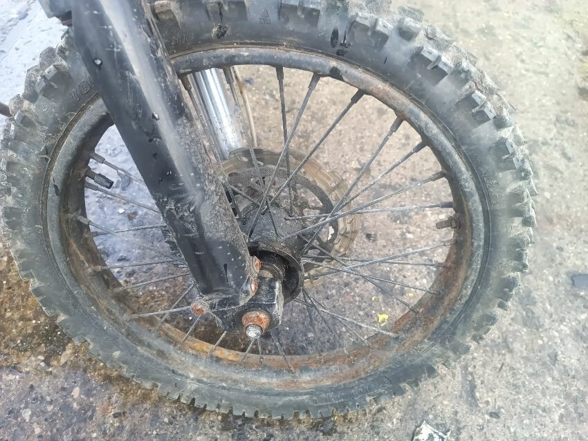 Loose plastics, scratched rear swing arm snapped throttle cable, rusted exhaust, rusted wheels general wear & tear