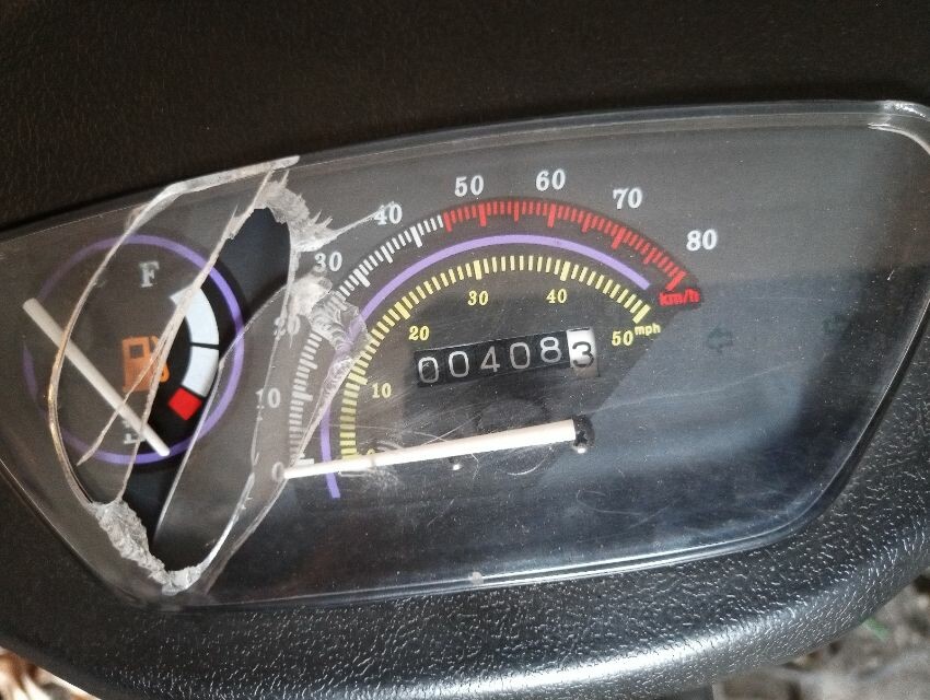 Mirror/rear lamp/ trim missing/ ignition switch and wiring/clocks damaged/plastic fairing cracked/