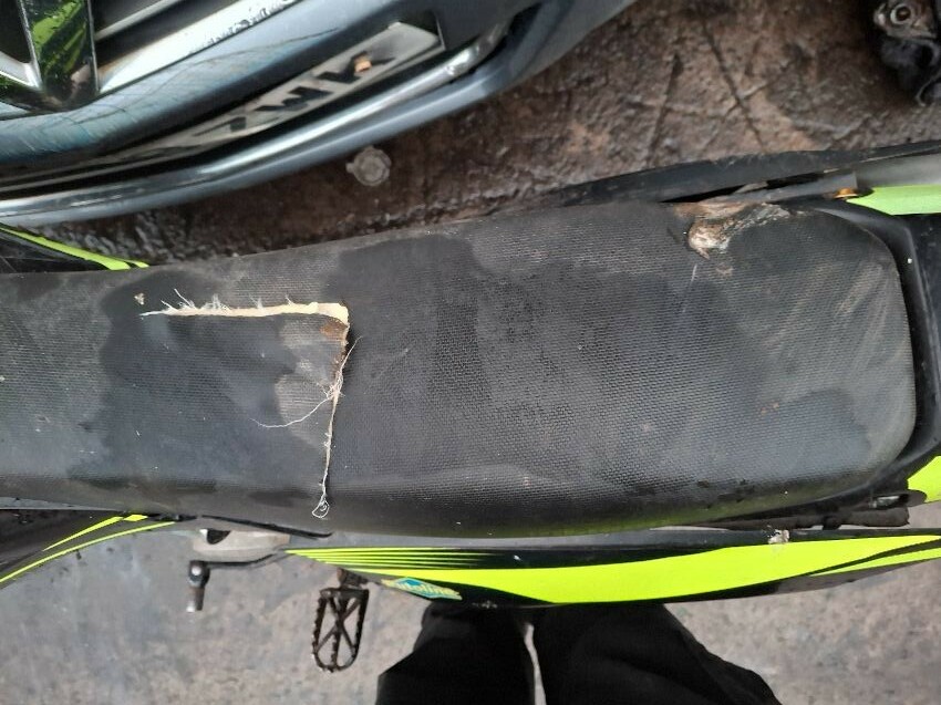 Wear and tear. major and minor scratches, cracks, dents and paint damage to the vehicle. handlebars and seat damage.