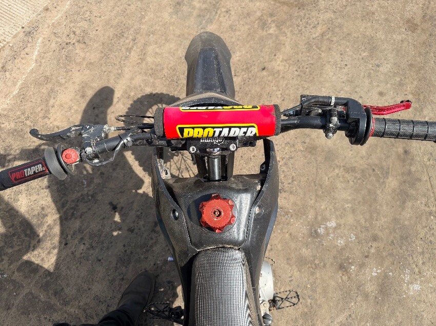 Left handlebar bent. scuffs and’s catches over plastics. general wear and tear.