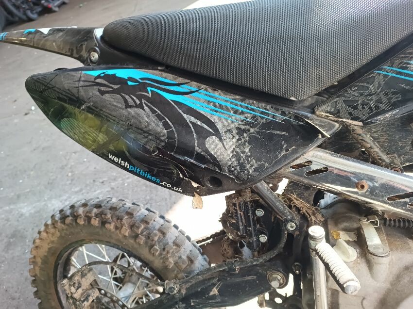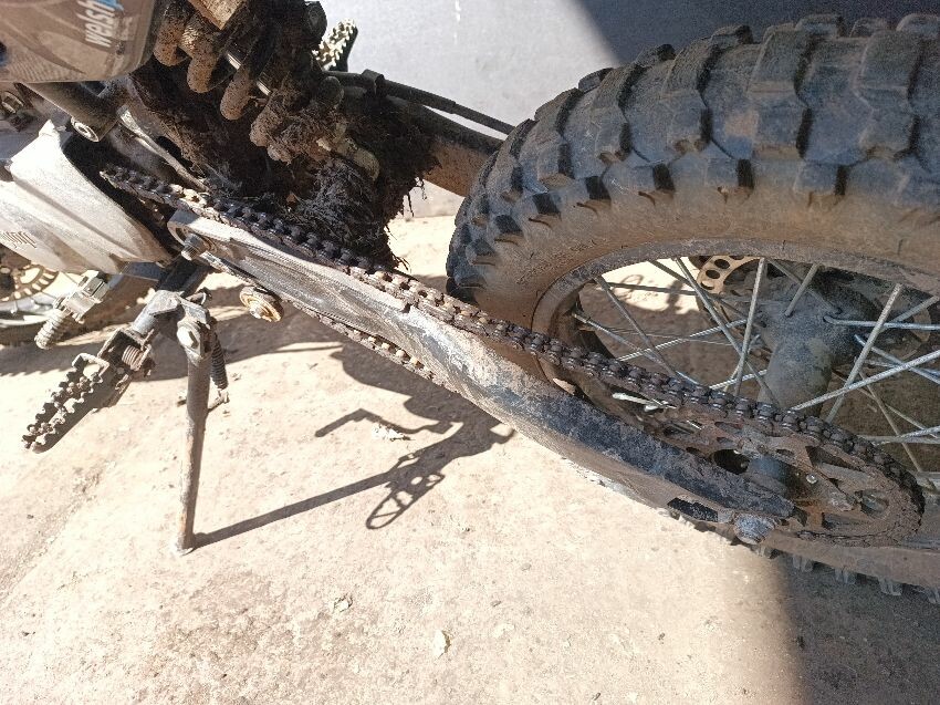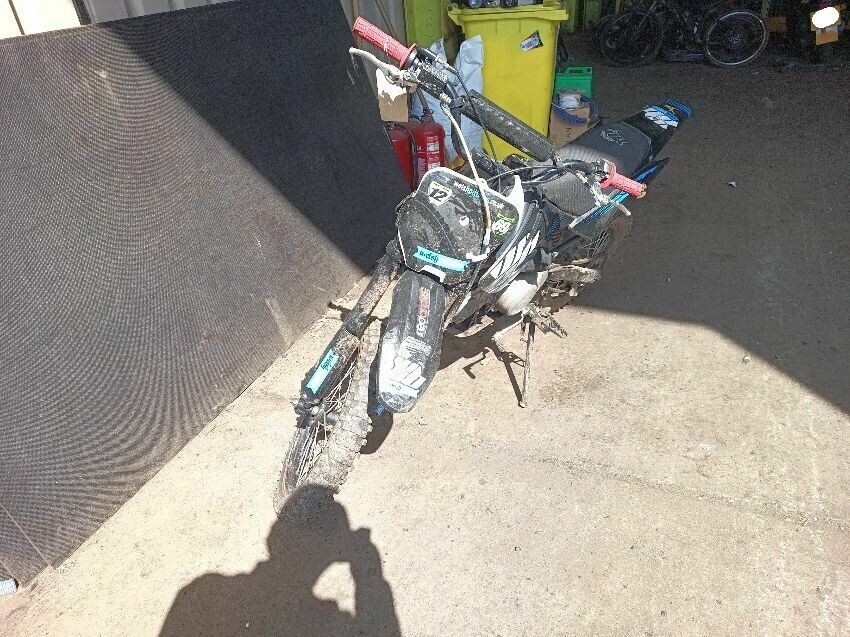 Fires but doesn't stay running, muffler is missing internals, chain is loose, right rear plastics decals are peeling general wear and tear.