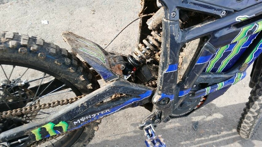 Front mudguard, brake levers, grips, handlebars, ns frame, seat, os frame, scuffs and scratches all over, general wear and tear for age