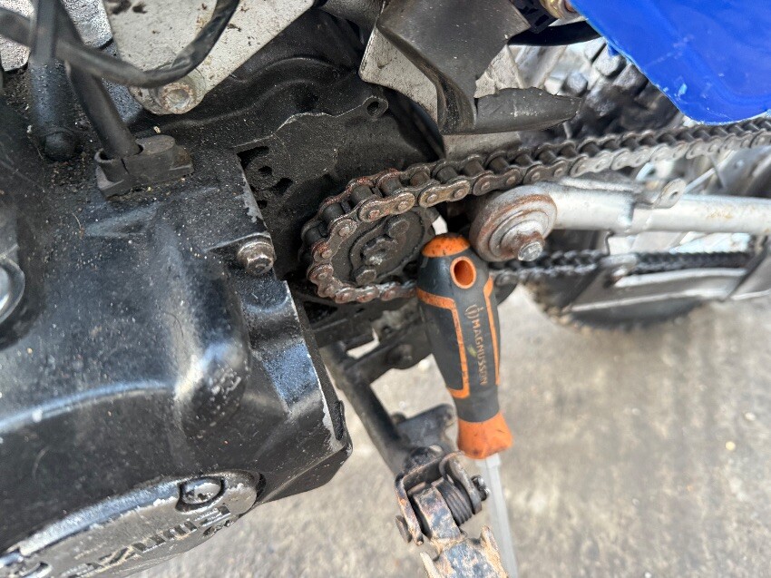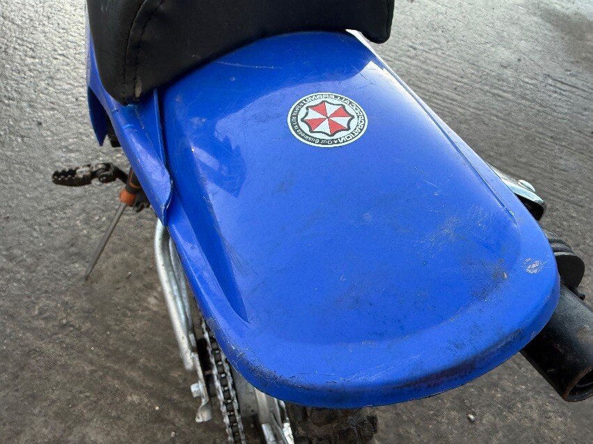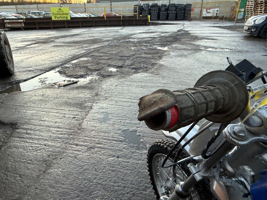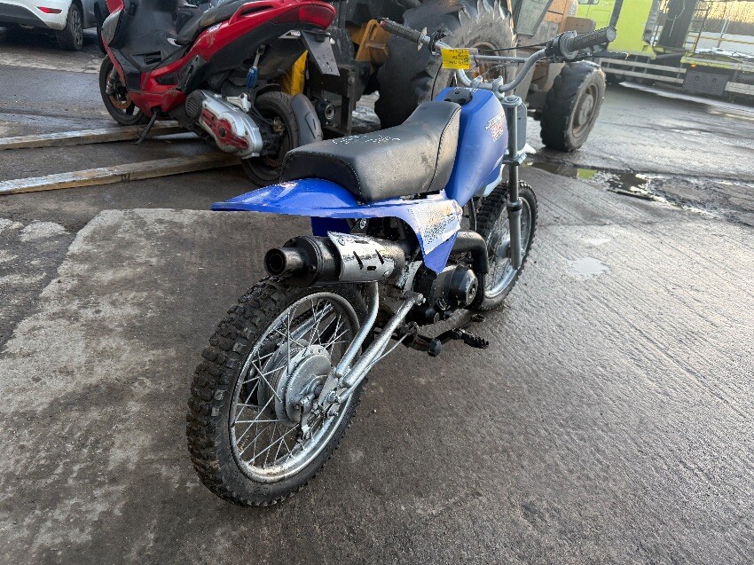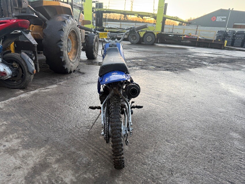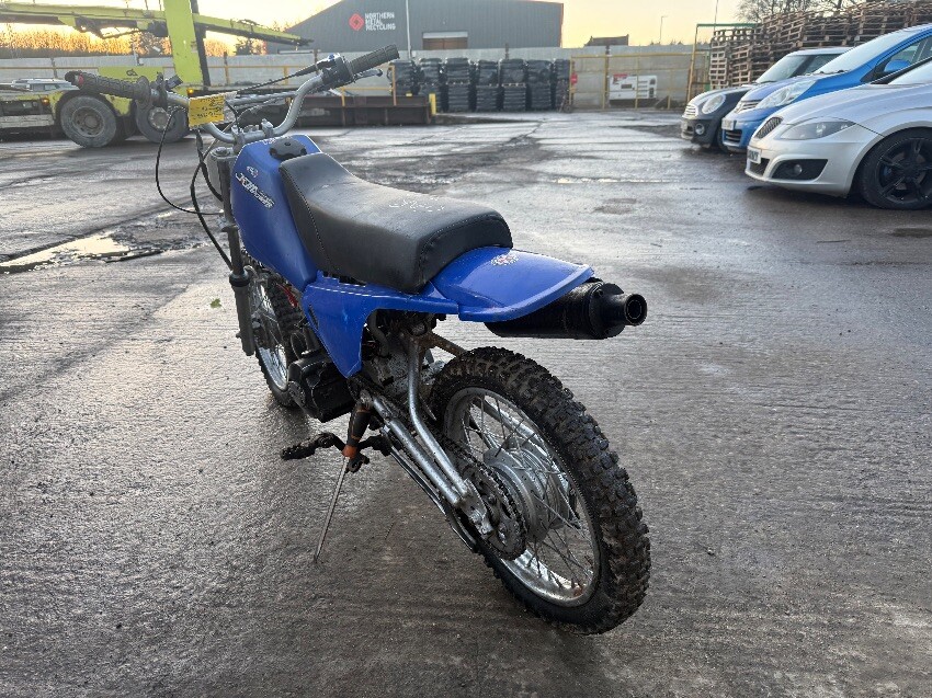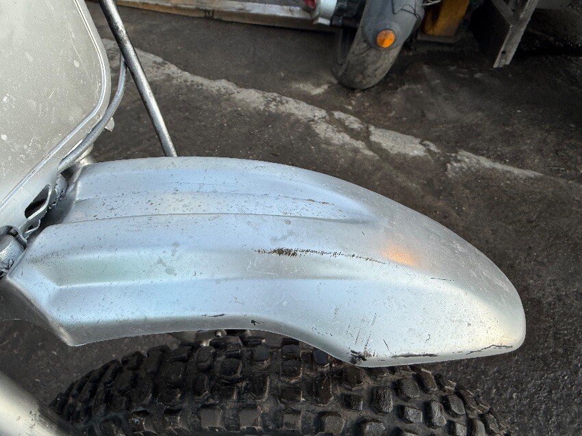 Rear mudguard, o/s engine casing, o/s front brake lever, o/s front mudguard, n/s handle grip, no side stand, general wear and tear.