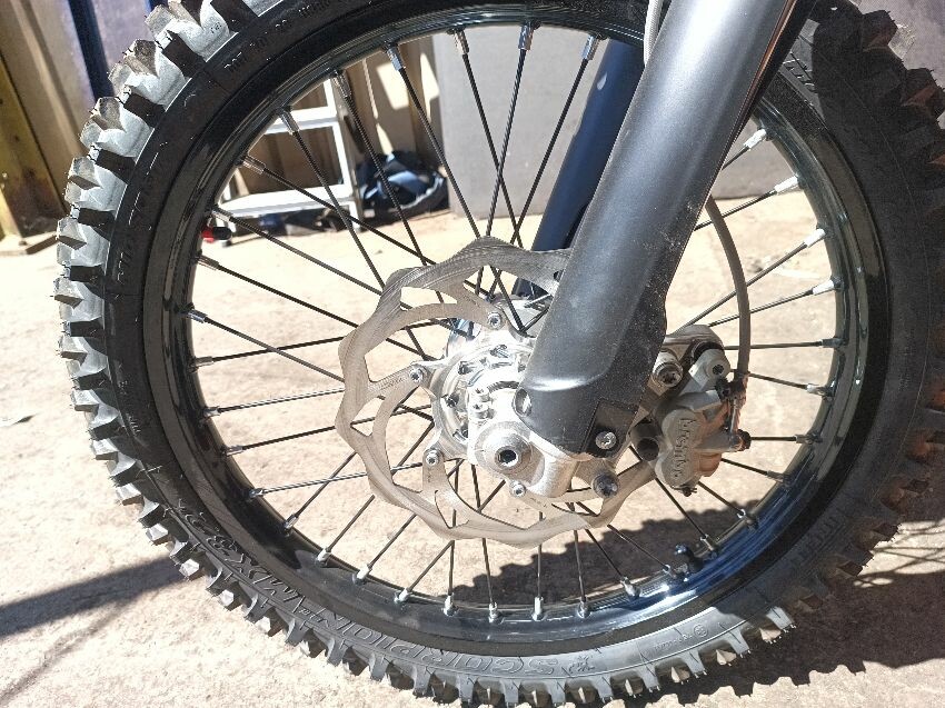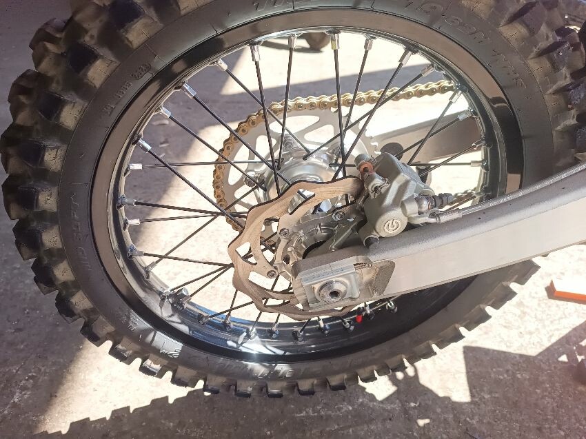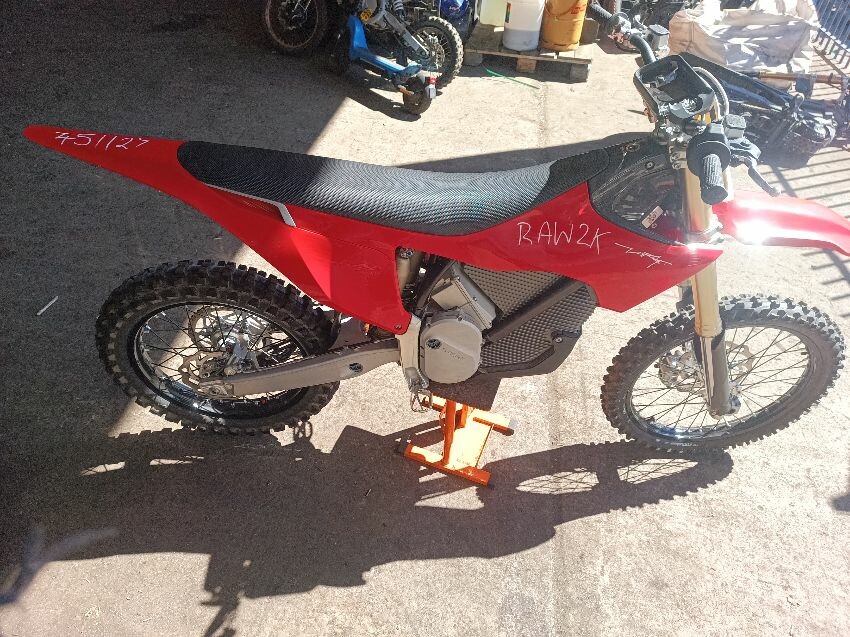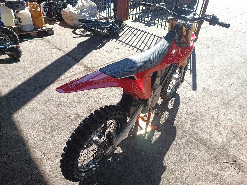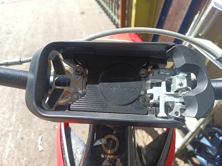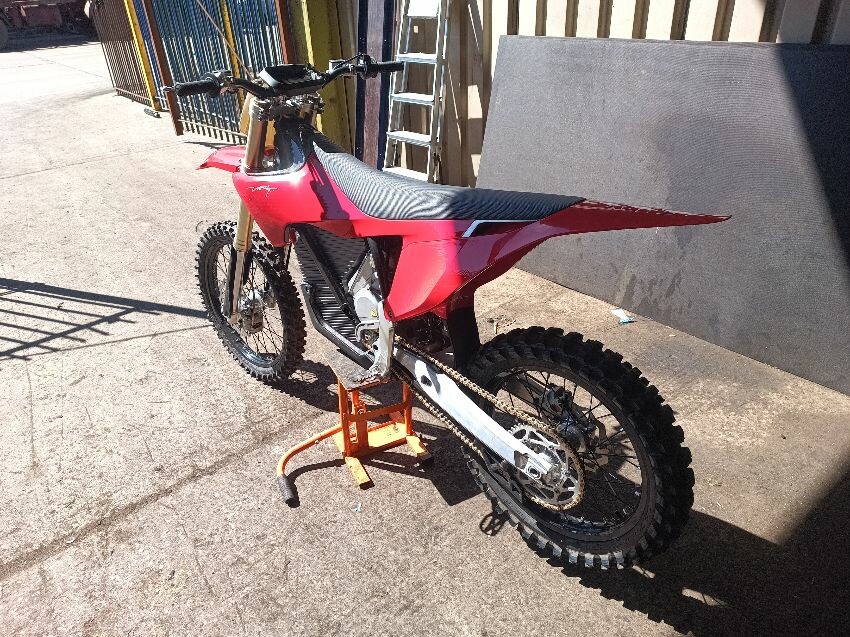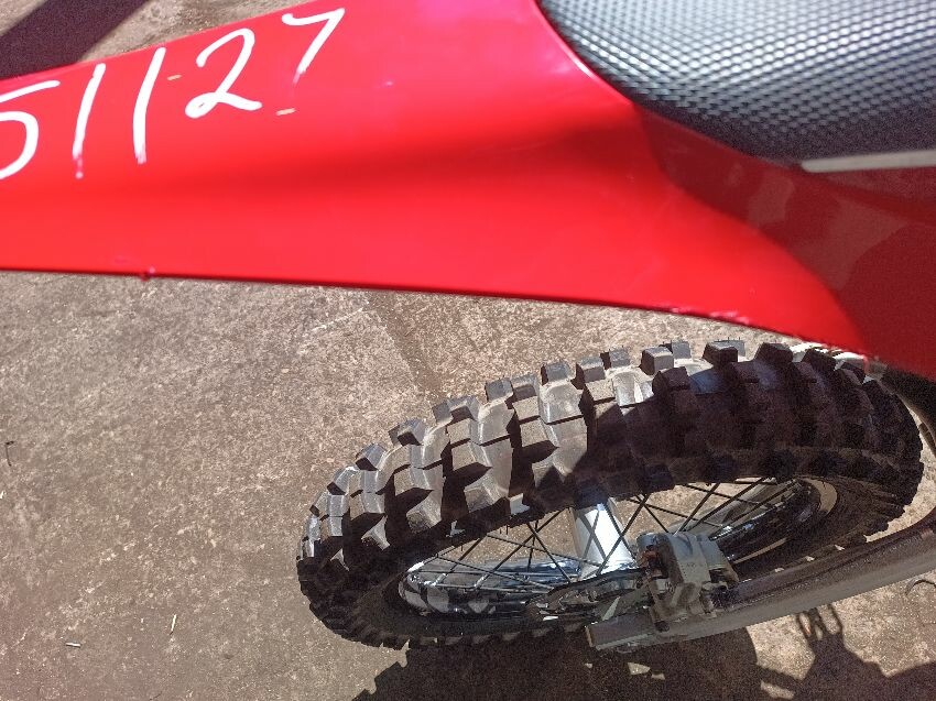 Missing screen, scuff on rear mud guard, scuff on front mudguard, right grip is damaged, motor cover scratched, general wear and tear.