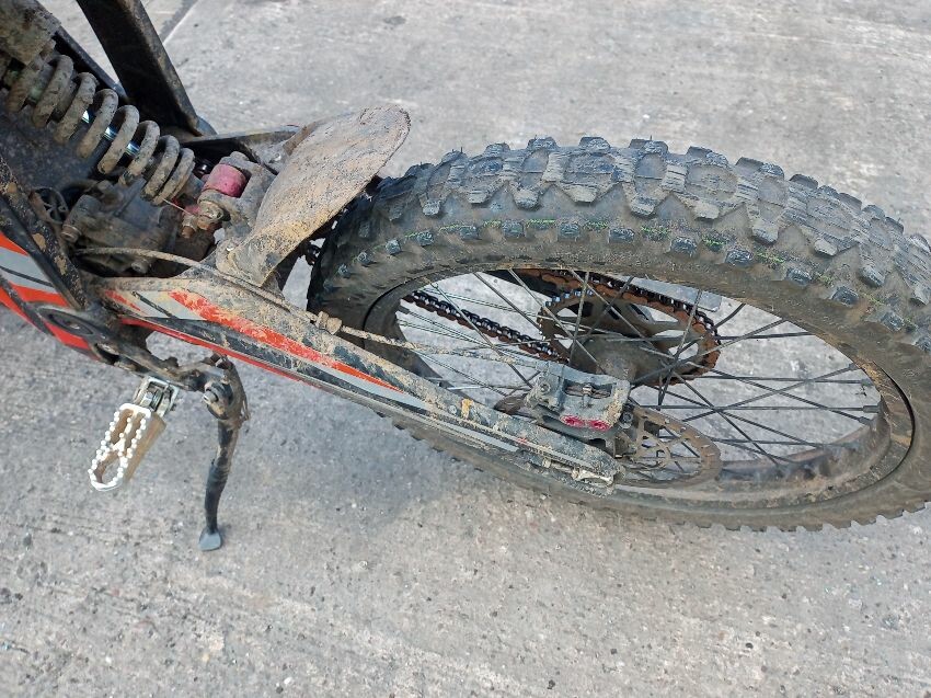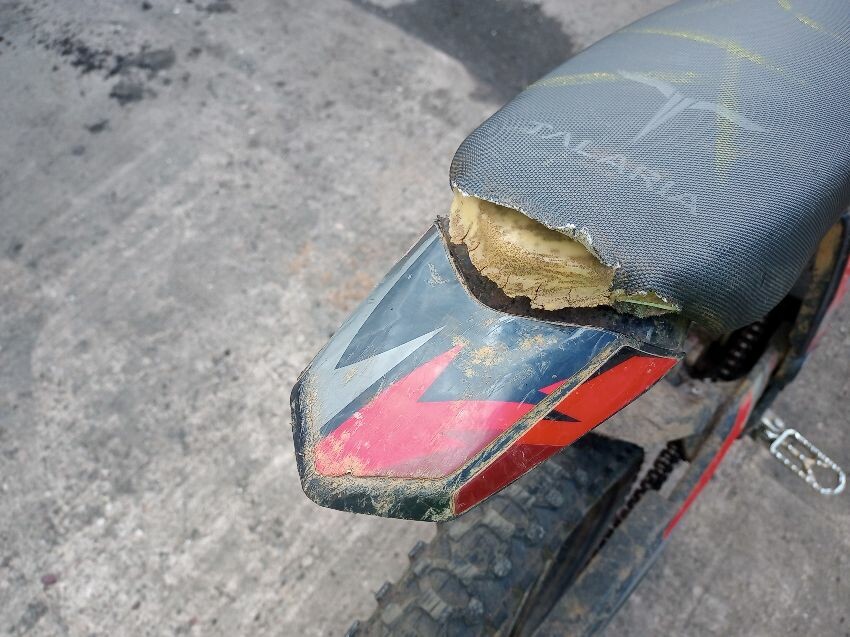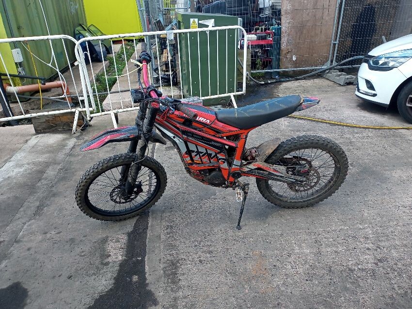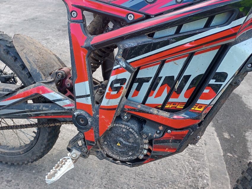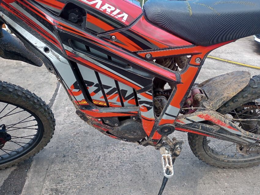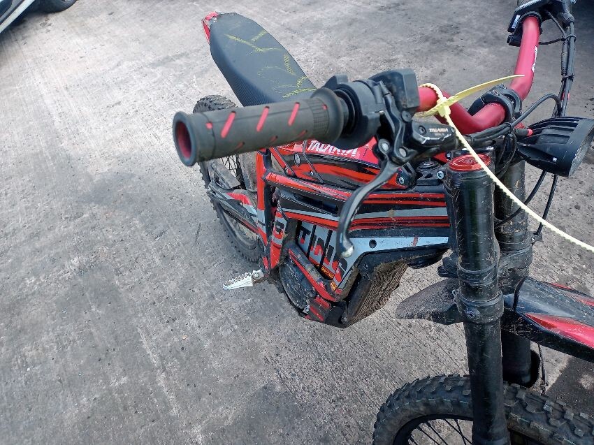 This is a talaria sting, screen cracked, seat torn, frame both sides has damage, no brakes, both brake levers bent, off road use visible, general wear and tear and scratches.