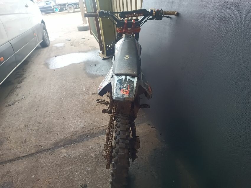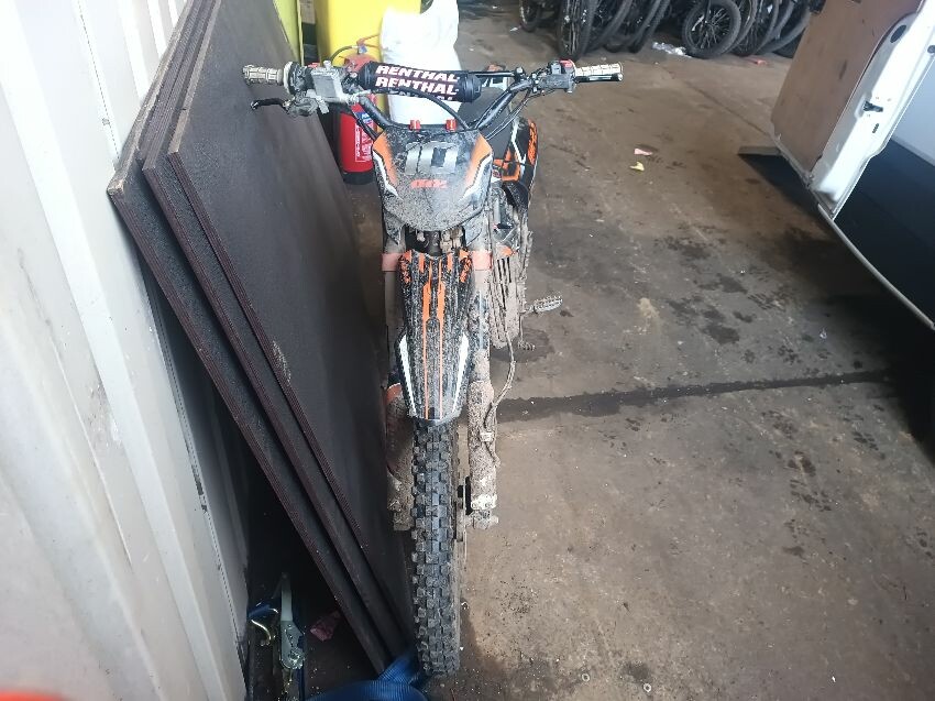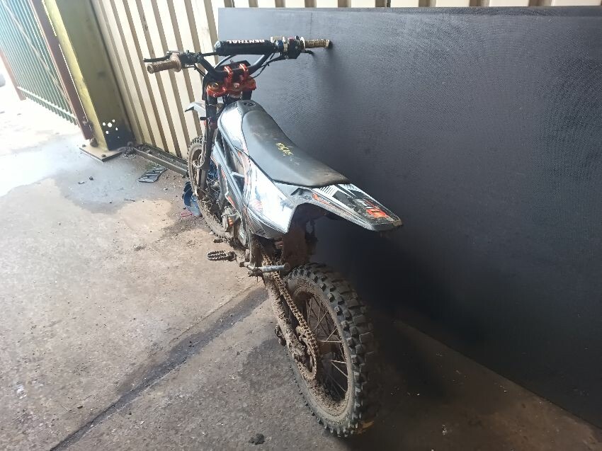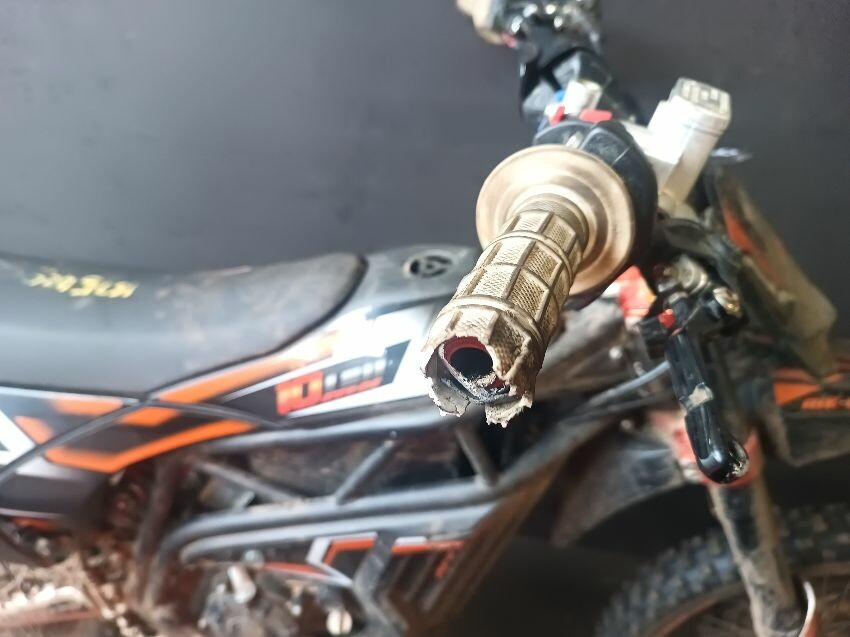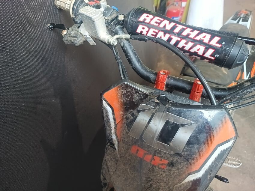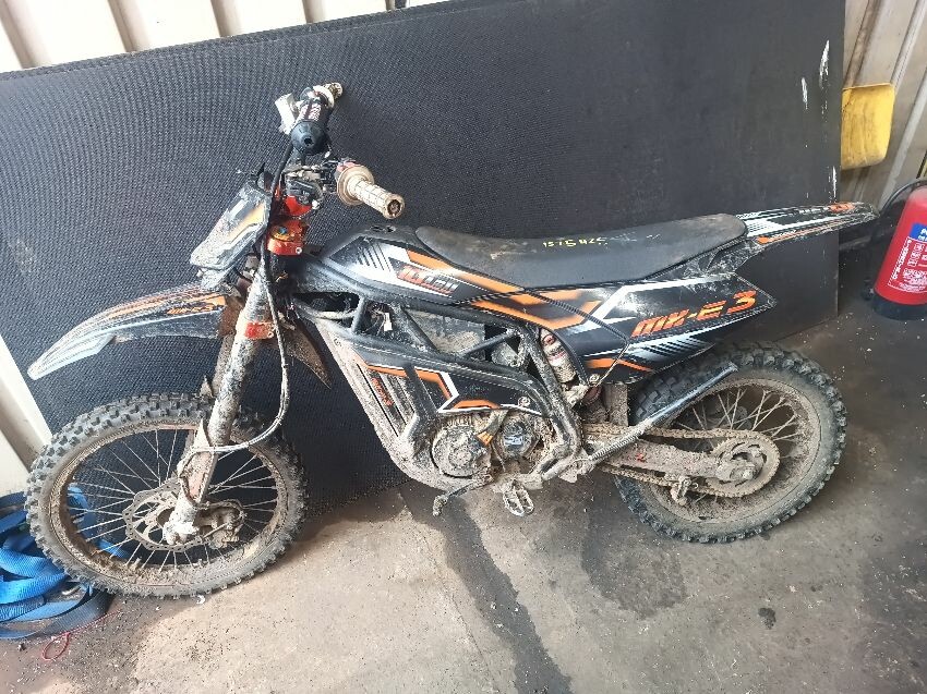 Cut wires, damaged grips, bent side stand, seat is torn, seat plastics scuffed, handlebars bent, number plate is broken, general wear & tear
