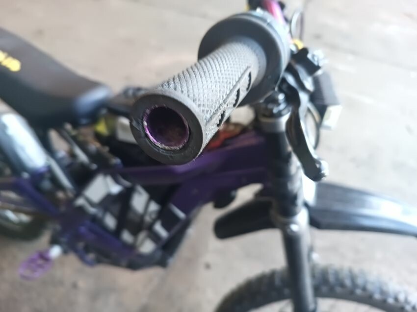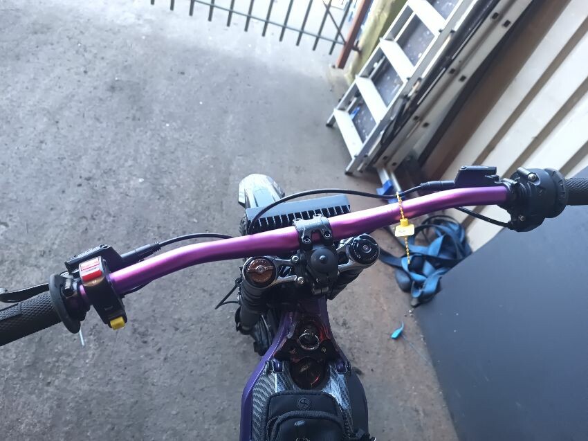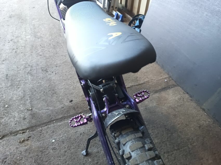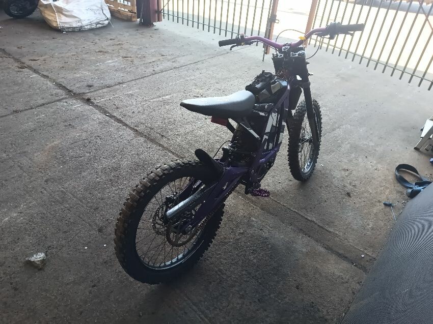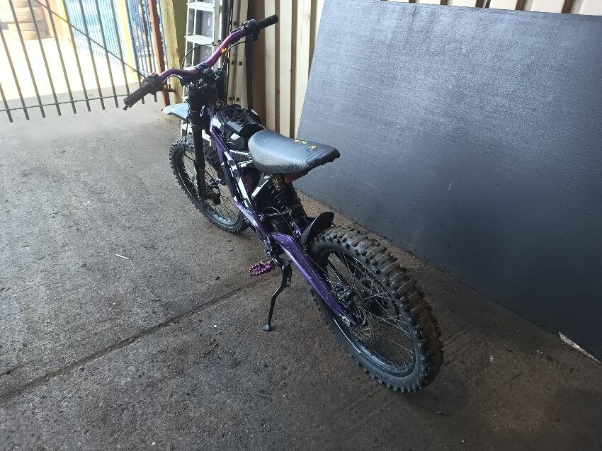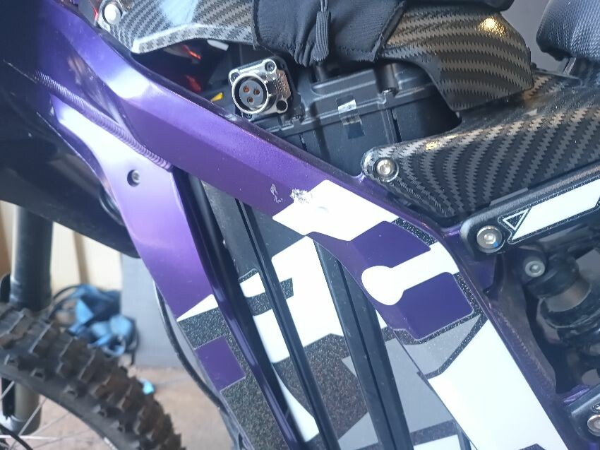 Rear mud guard missing, bar ends damaged, bolt missing from ignition, digital display missing, frame scuffed, left brake lever is damaged, rear swing arm scuffed, general wear & tear.
