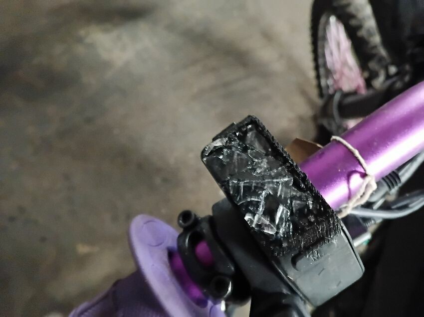 Plastics all round, seat, handle bars, screen smashed, scuffs wear and tear no brakes