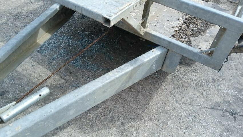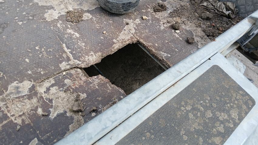 Hitch damaged, wiring faulty, handbrake faulty, holes in floor, poor condition throughout, jockey wheel missing, scuffs and scratches all over