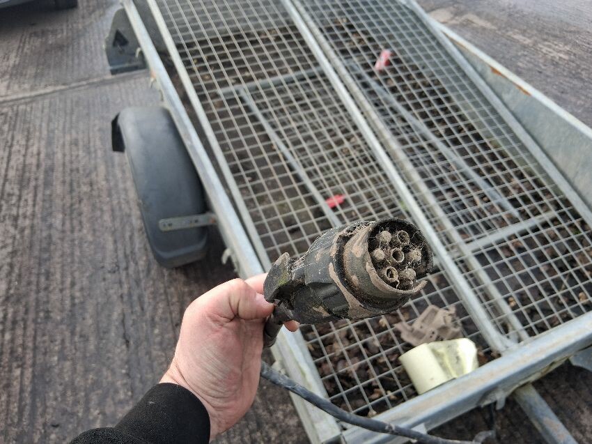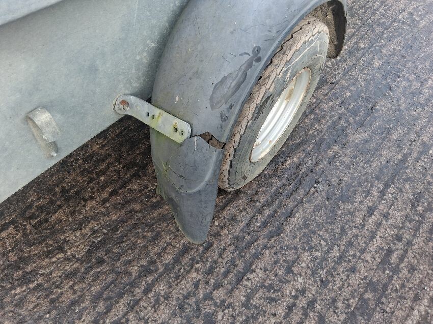 O/s tyre flat, o/s marker light, o/s wheel arch missing, n/s wheel arch broken, n/s marker ligher, jockey wheel missing. general wear and tear/ scratches